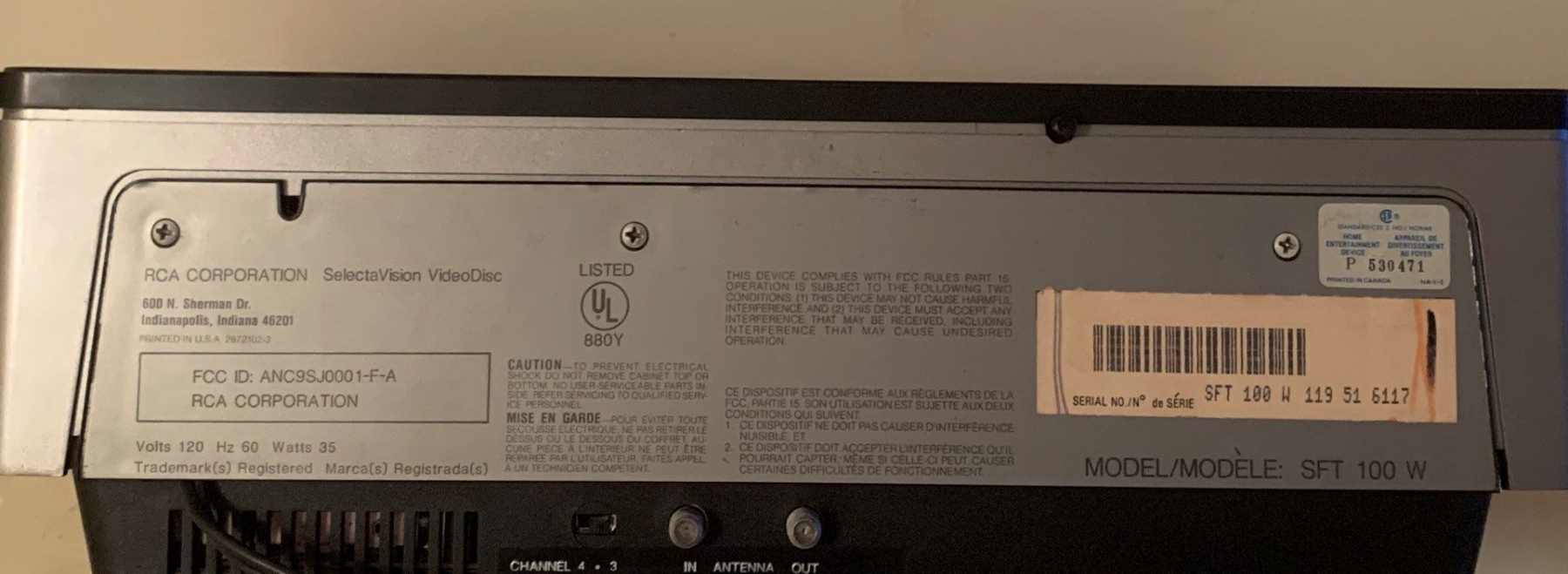 RCA Selectavision Video Disk Player Mo.SFT100W