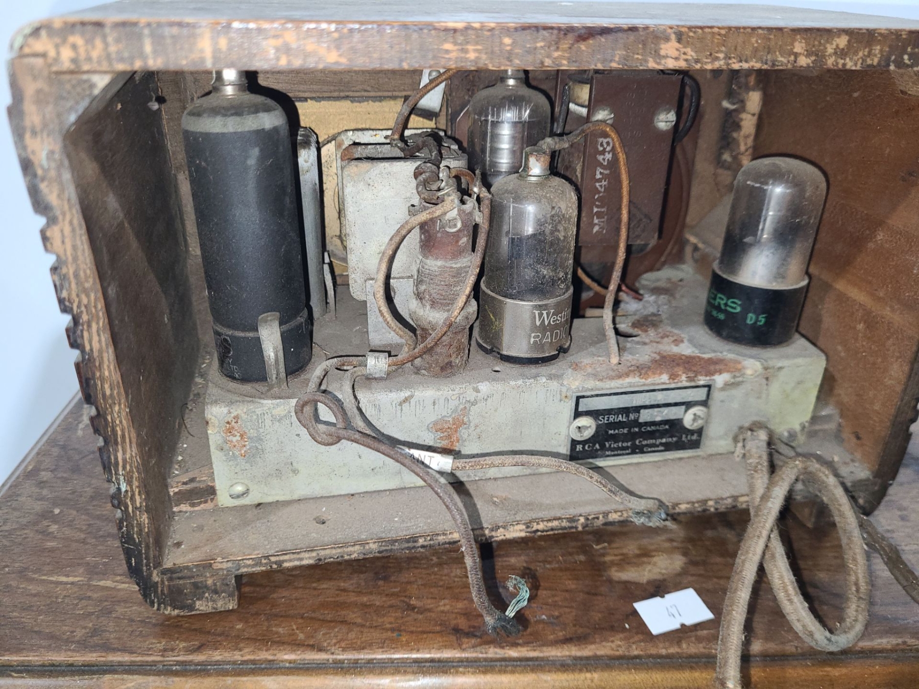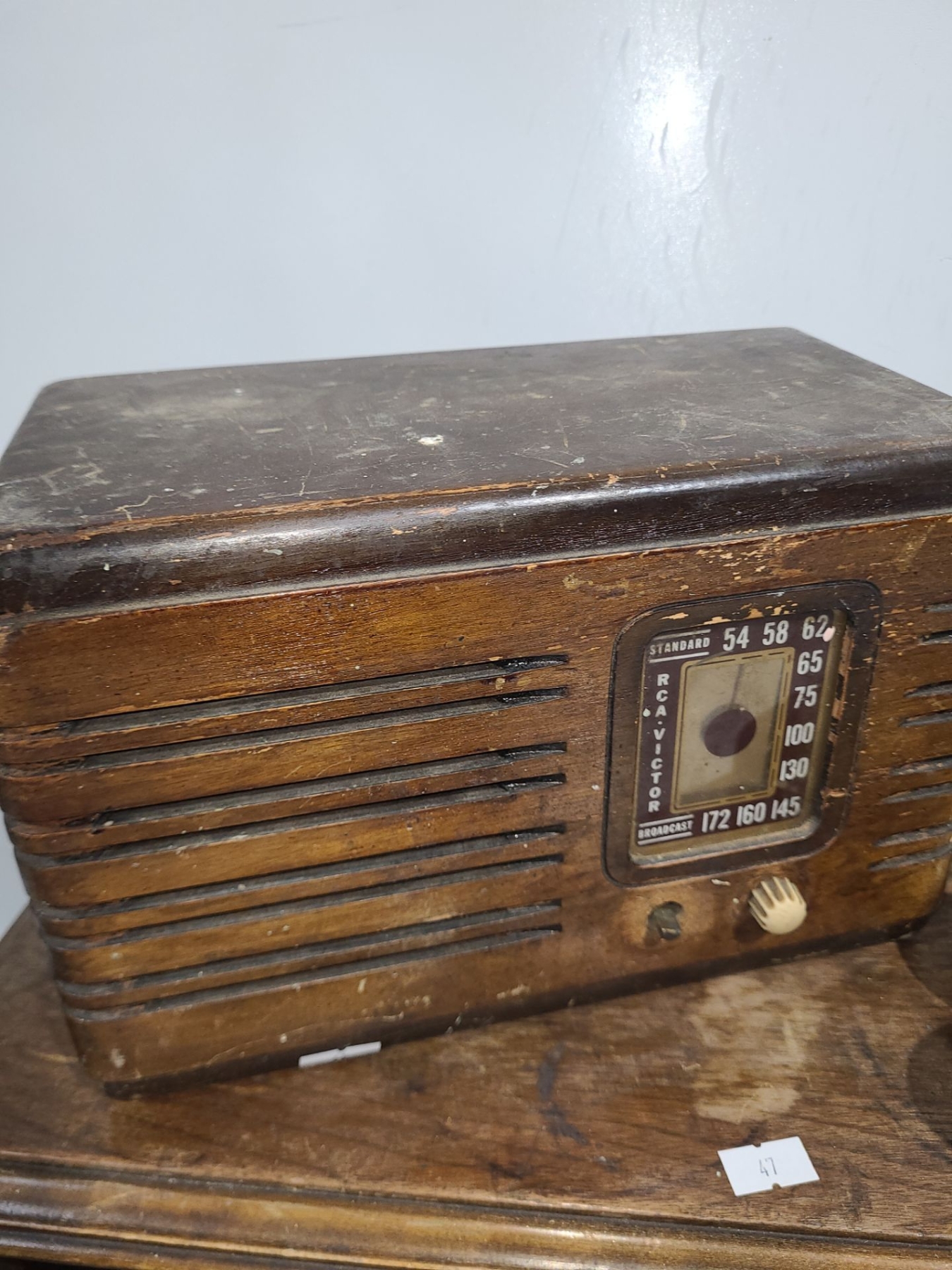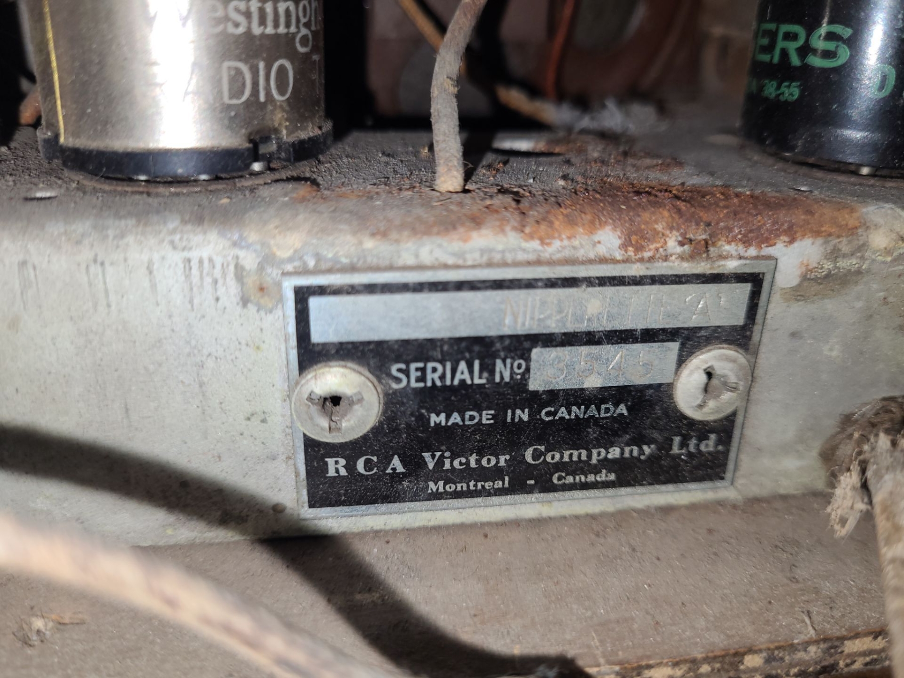 RCA Victor Serial 3545 Nipperette A Radio, Flip Top Box 28 W, 12 D, 9 T, Wooden Storage Box, Pin