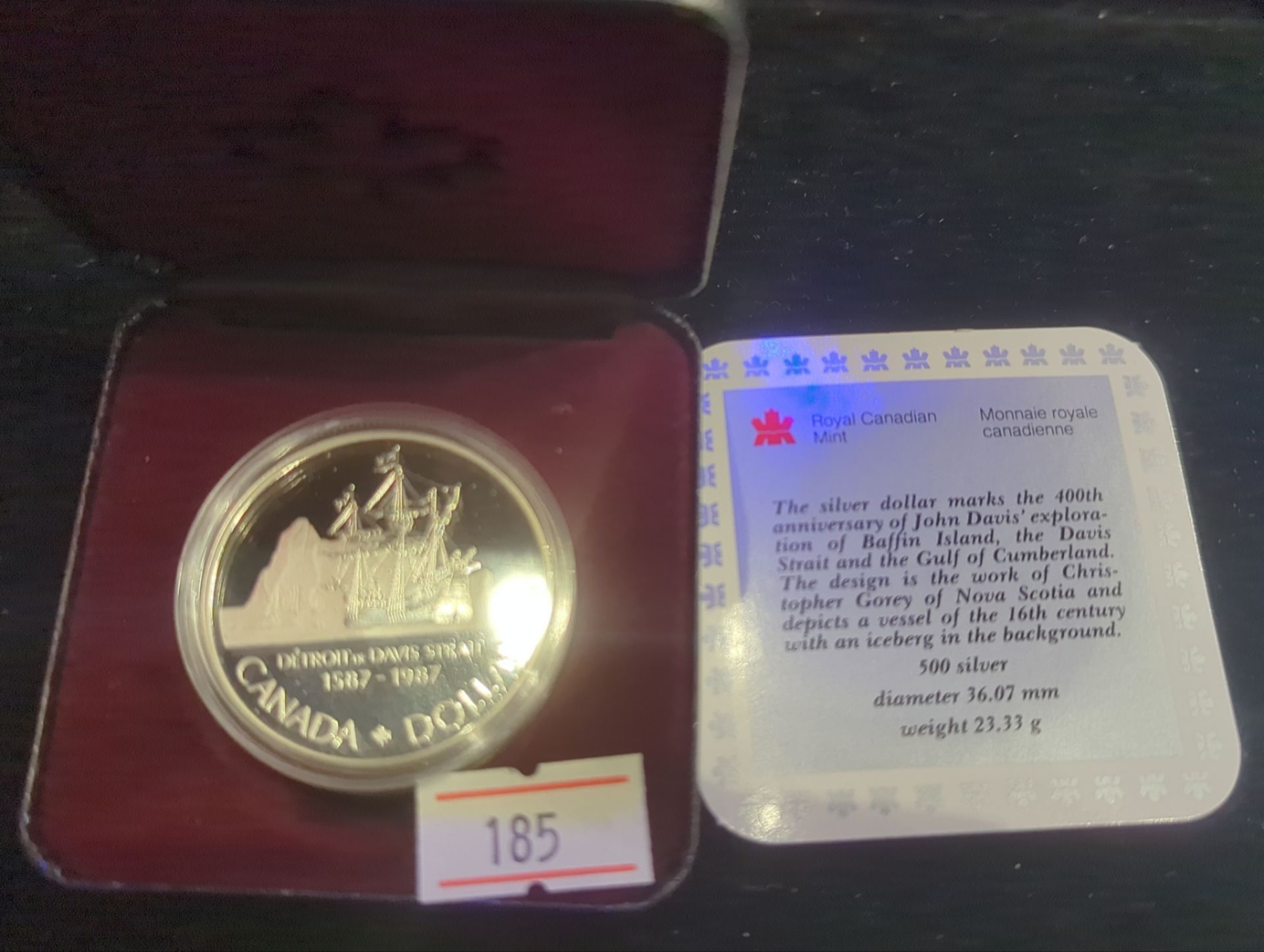RCM 1987 400th Anniversary of the Discovery of Davis Strait Silver 50% Dollar 23.32g
