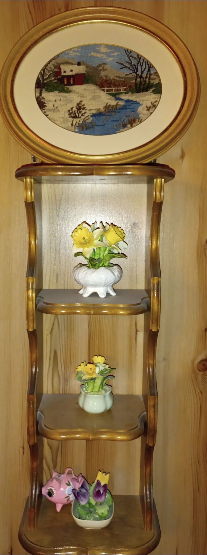 Radnor, Adderley, & Coalport Bone China Floral Collection w/piggy Bank & Small Trinket Wooden Shelf 23"tall