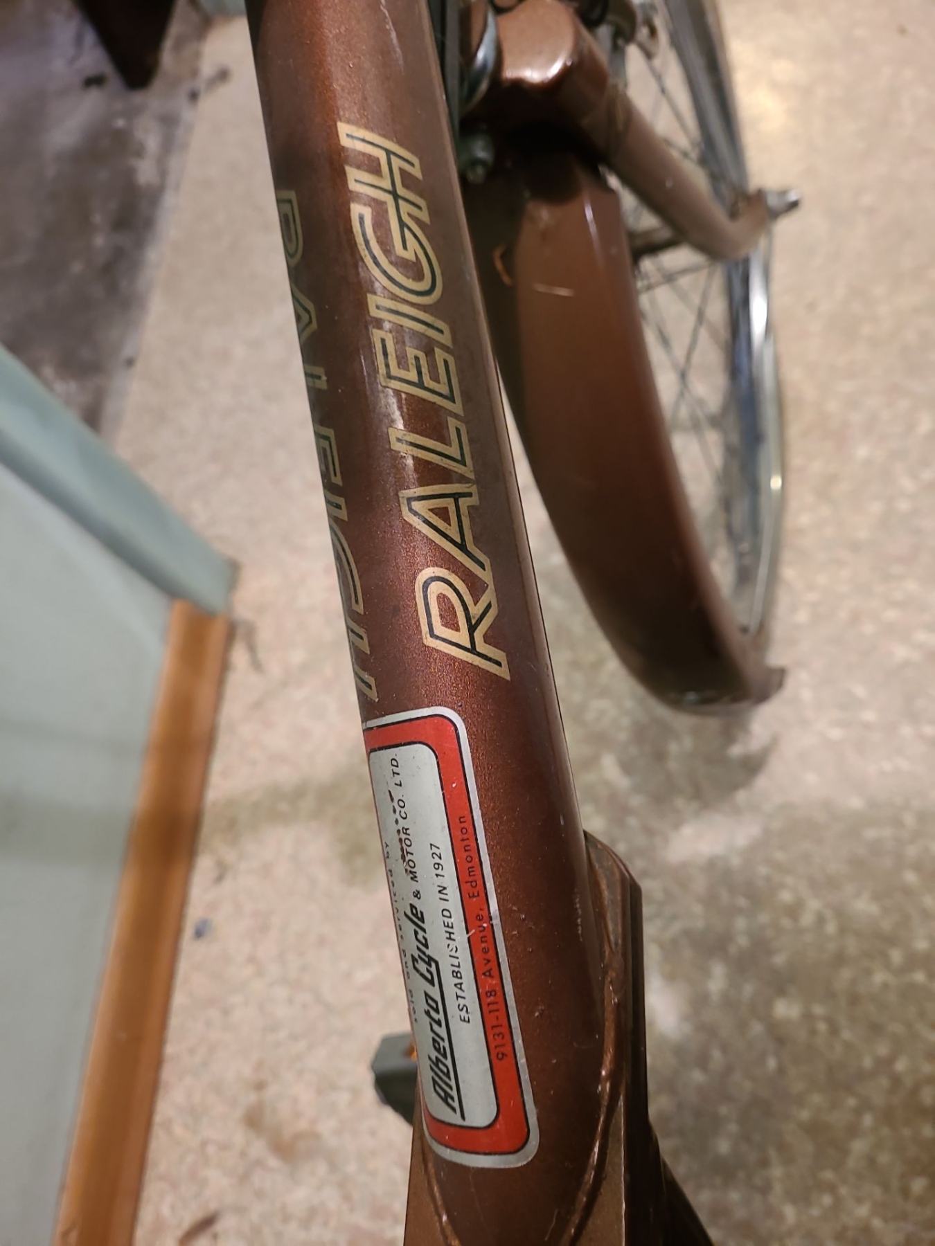 Raleigh Bicycle from Ground to Handlebars 63 T, 38 W from Wheel to Wheel