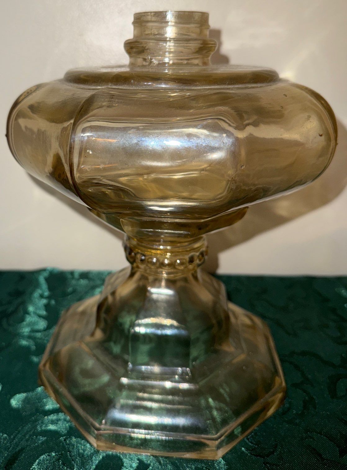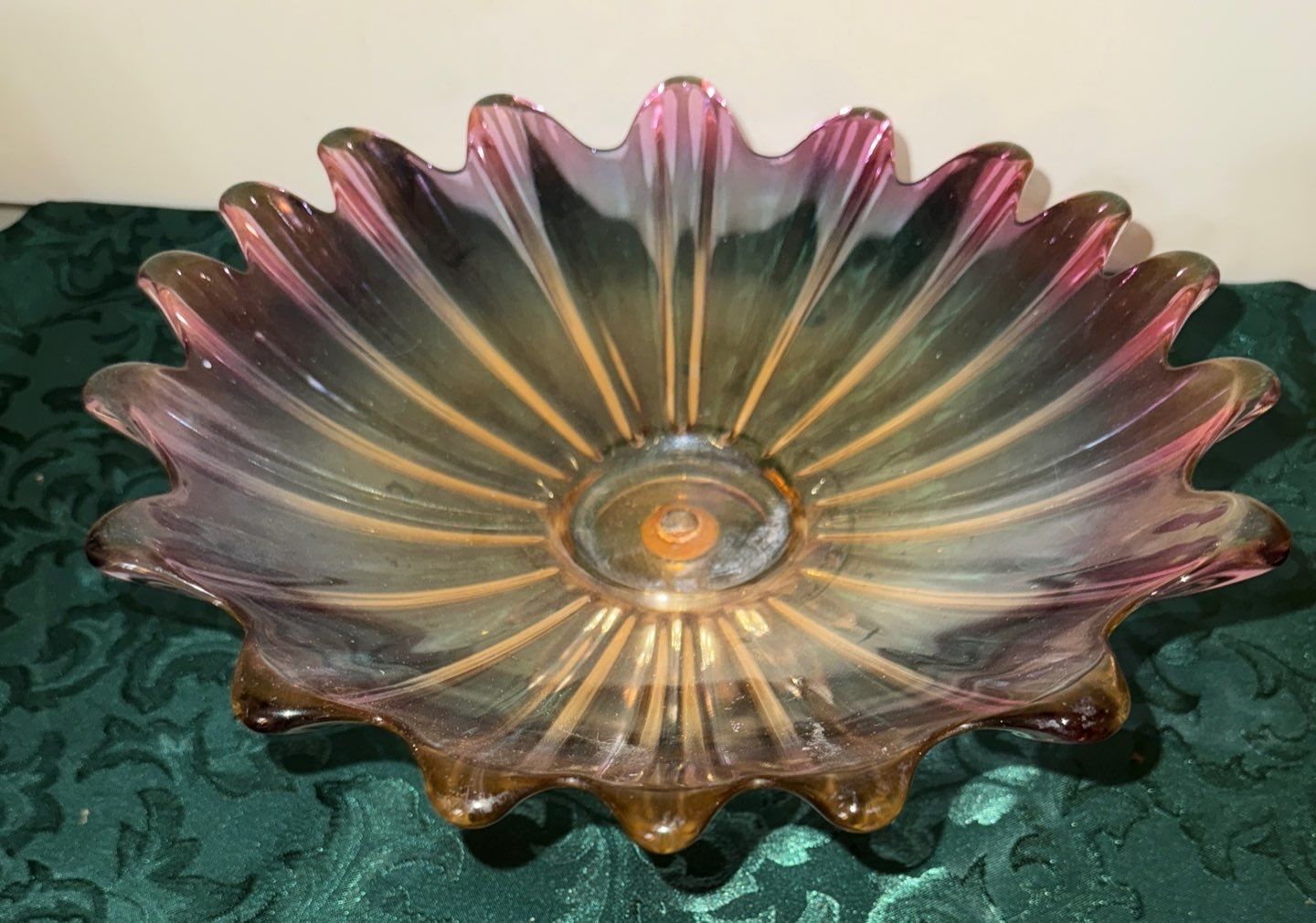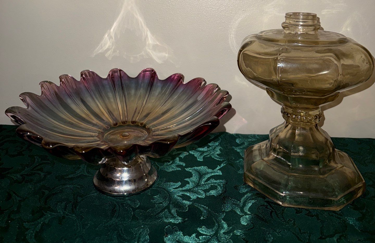Rare Carnival Glass Coal Oil Lamp & Celestial Spoke Shaped Carnival Multicolored Glass Bowl