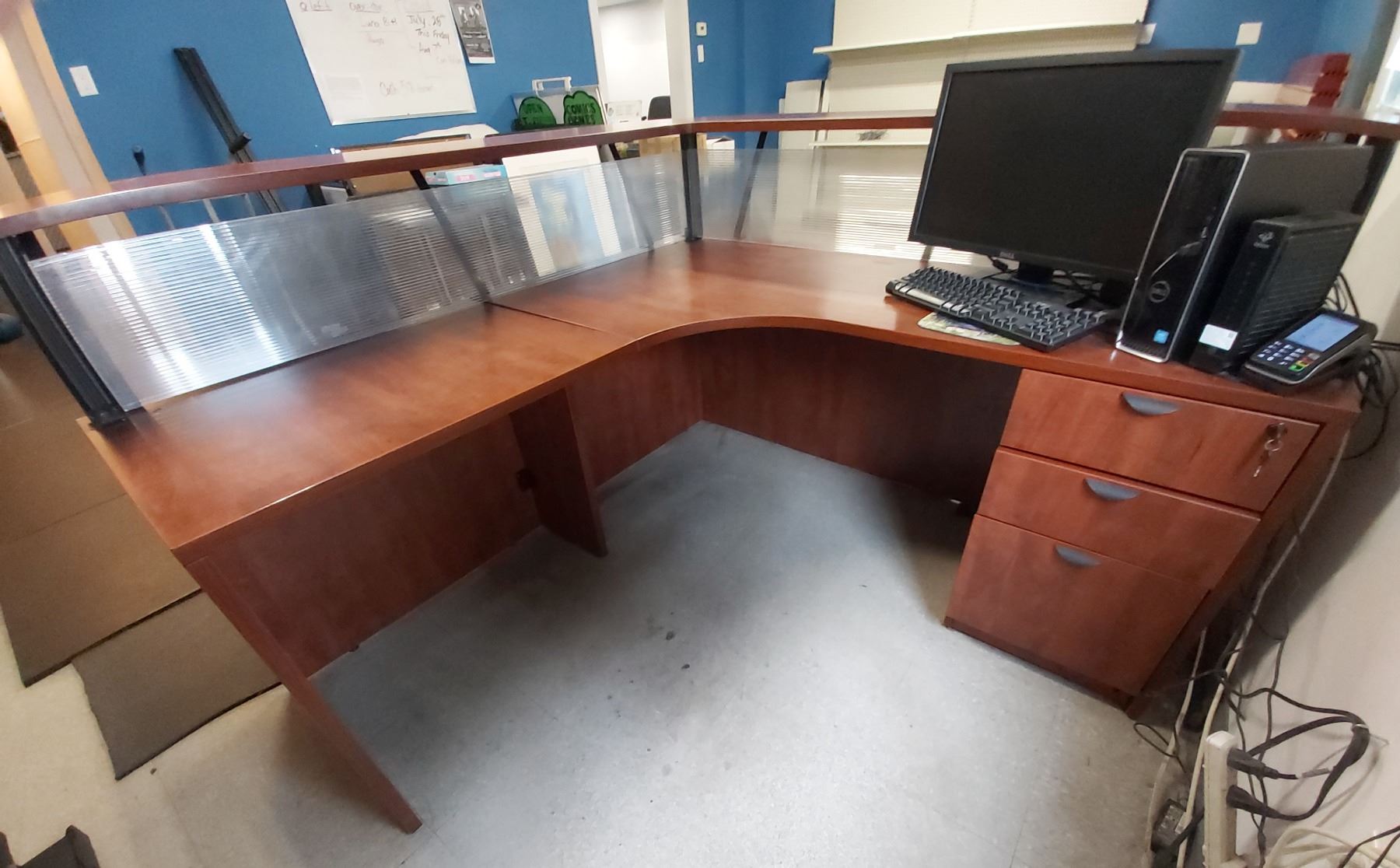 Reception Desk 6 Feet x 6 Feet x 42 Inches High - Has 3 Drawers (Computer not included)