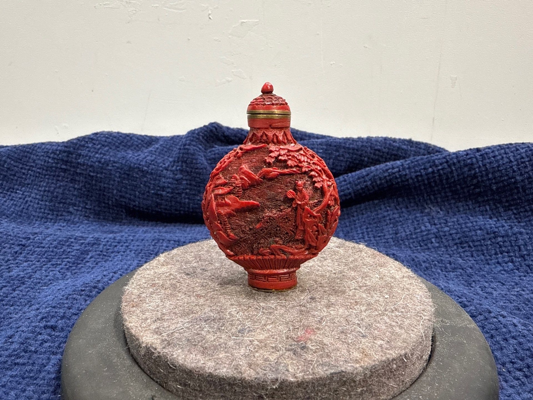 Red Carved Snuff Bottle 3H