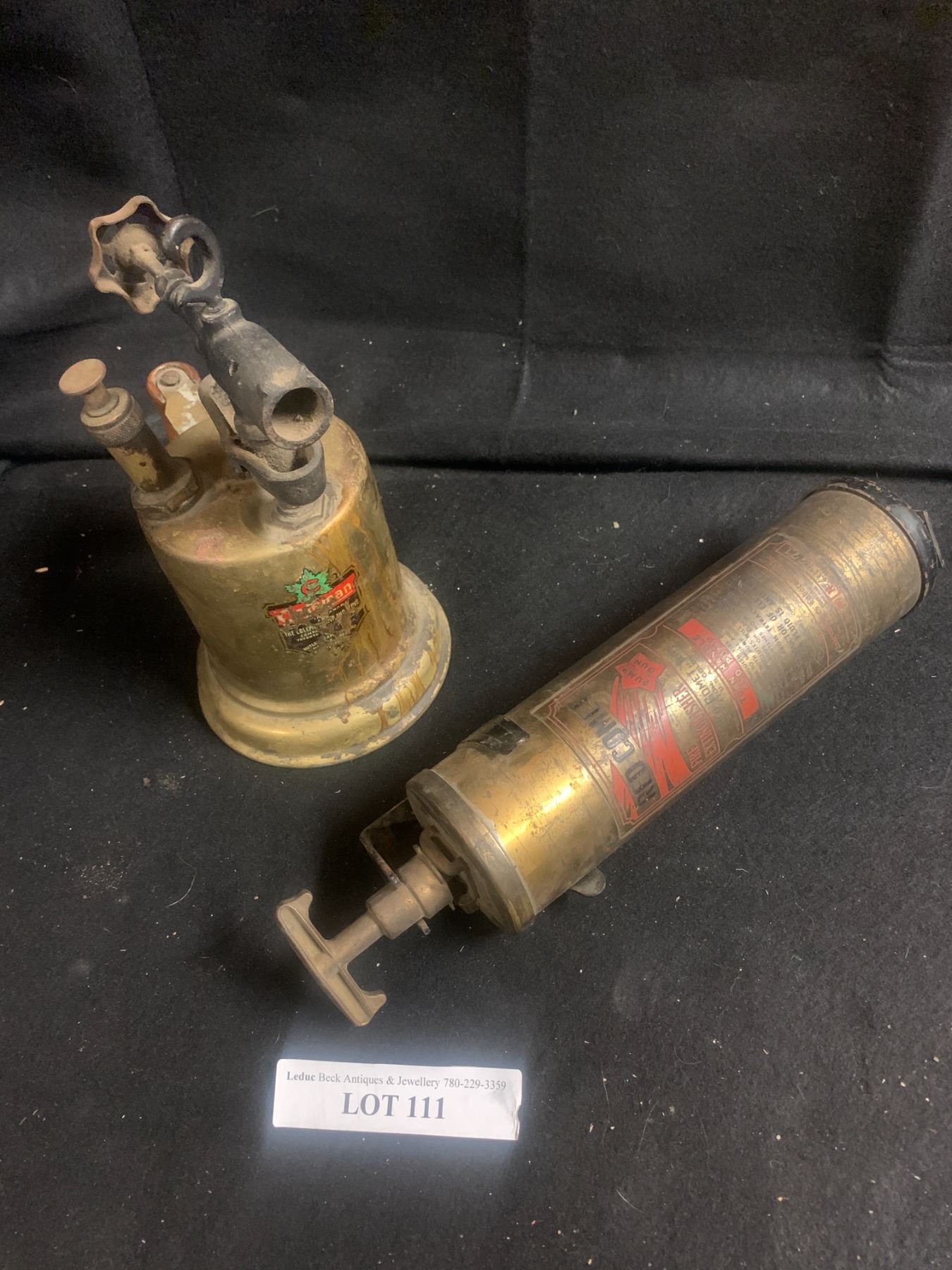 Vintage Red Comet Fire Extinguisher & Coleman Brass Blow Torch