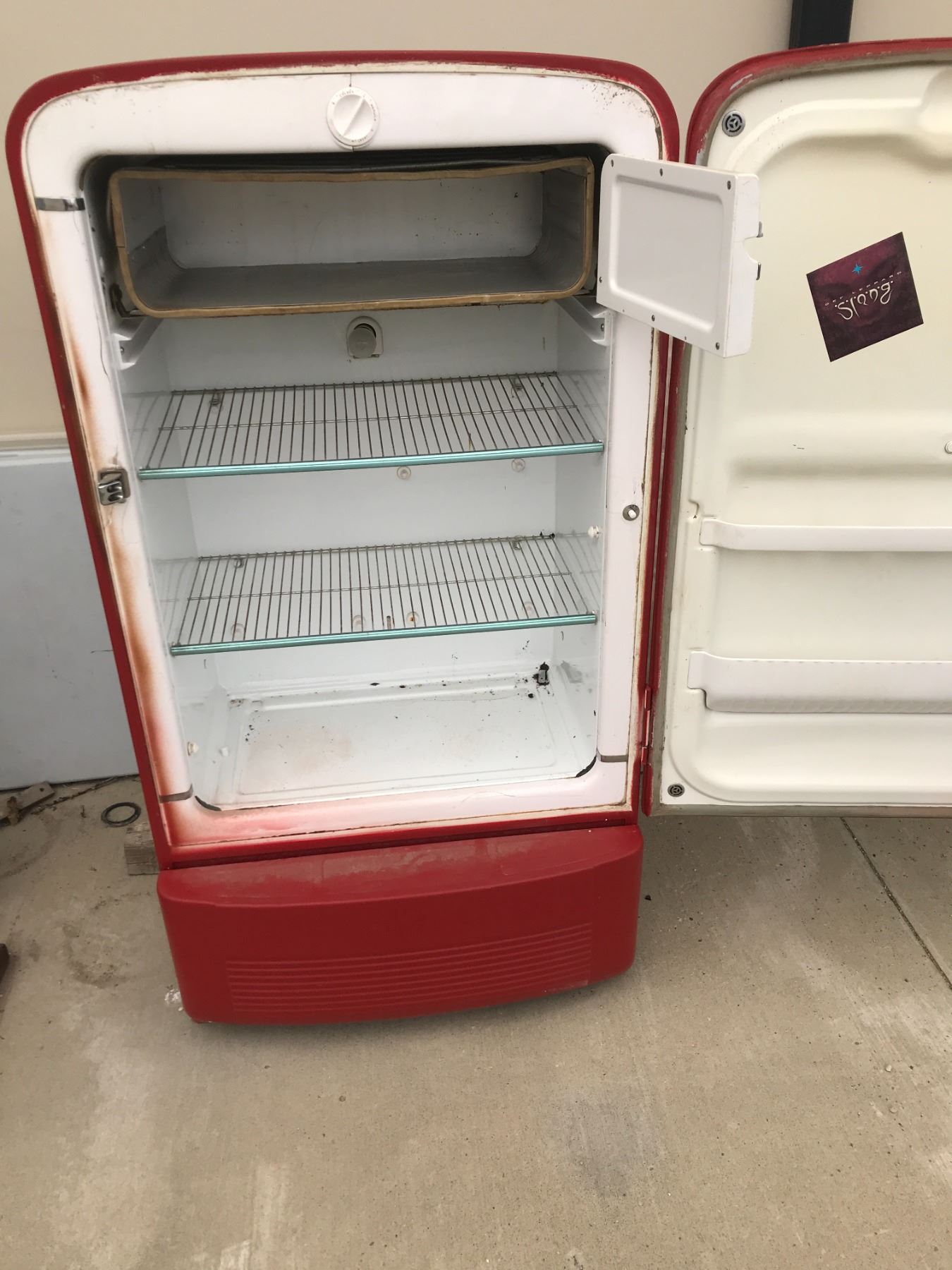 Red Retro Refrigerator (Works – Damage to Front Door)