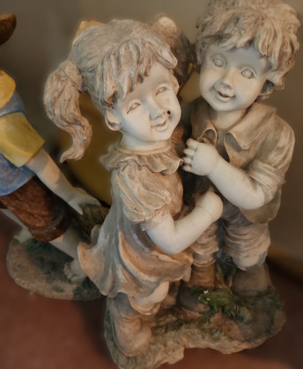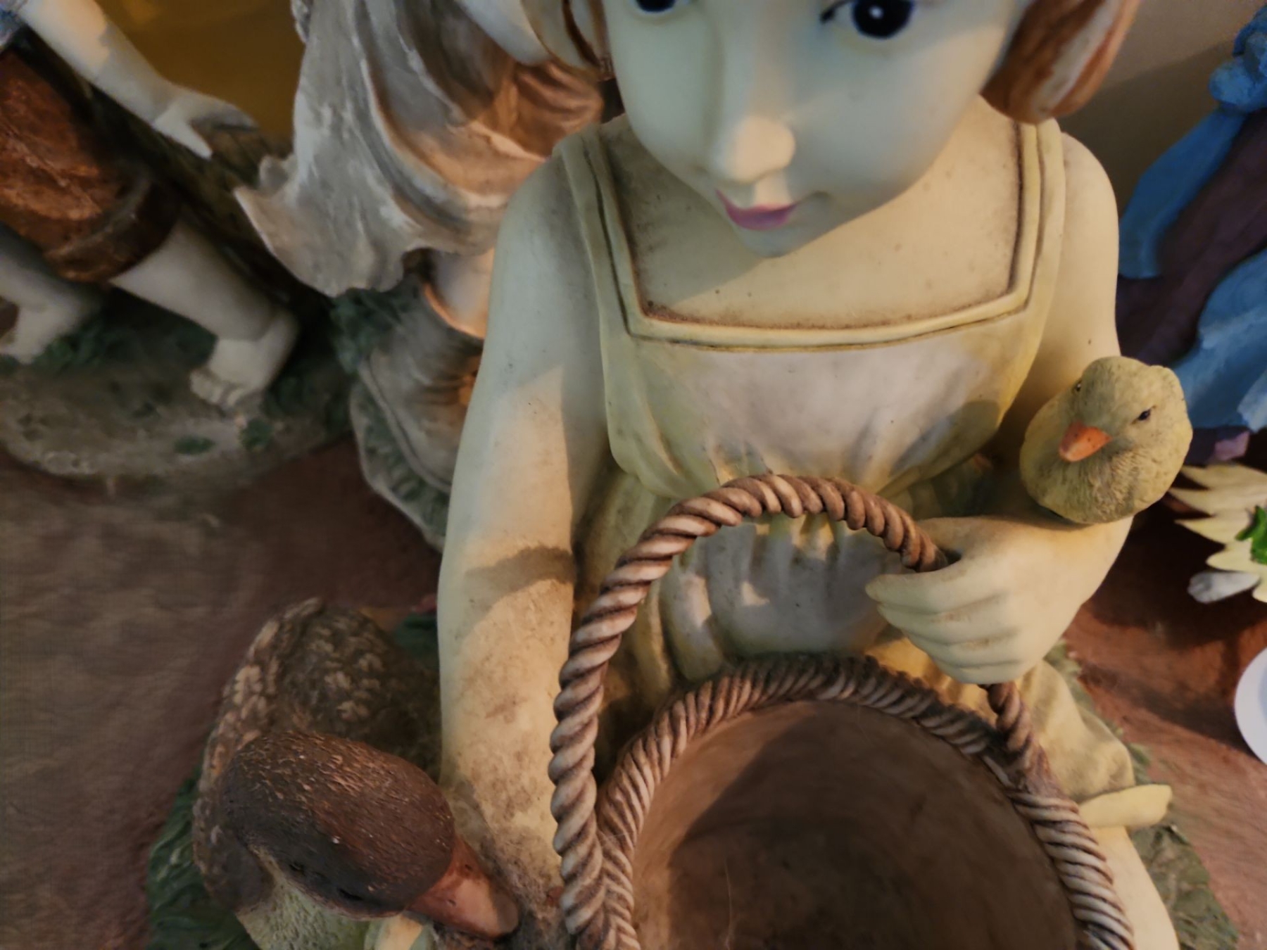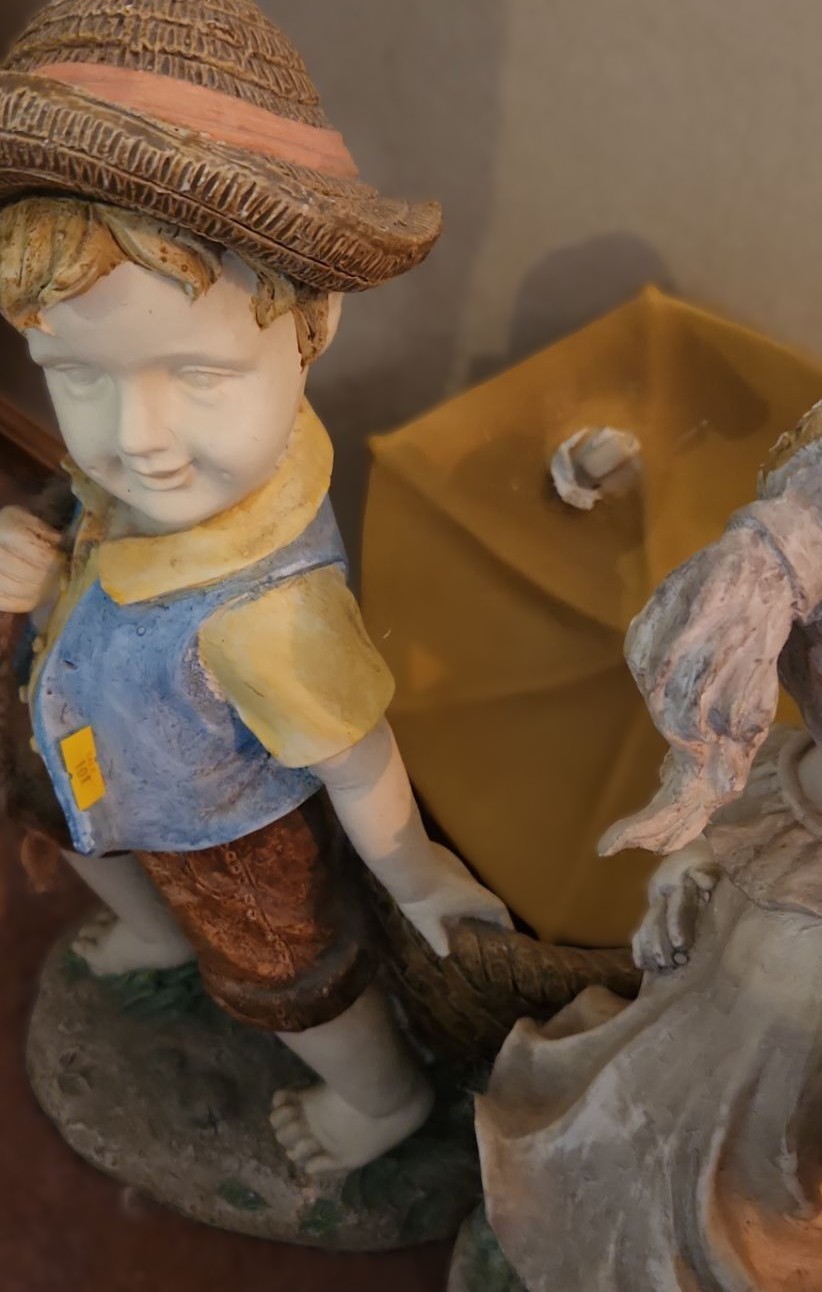 Boy w/ Basket has Broken Umbrella Piece in Basket