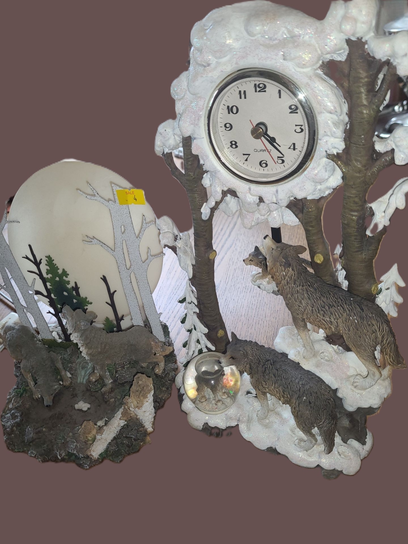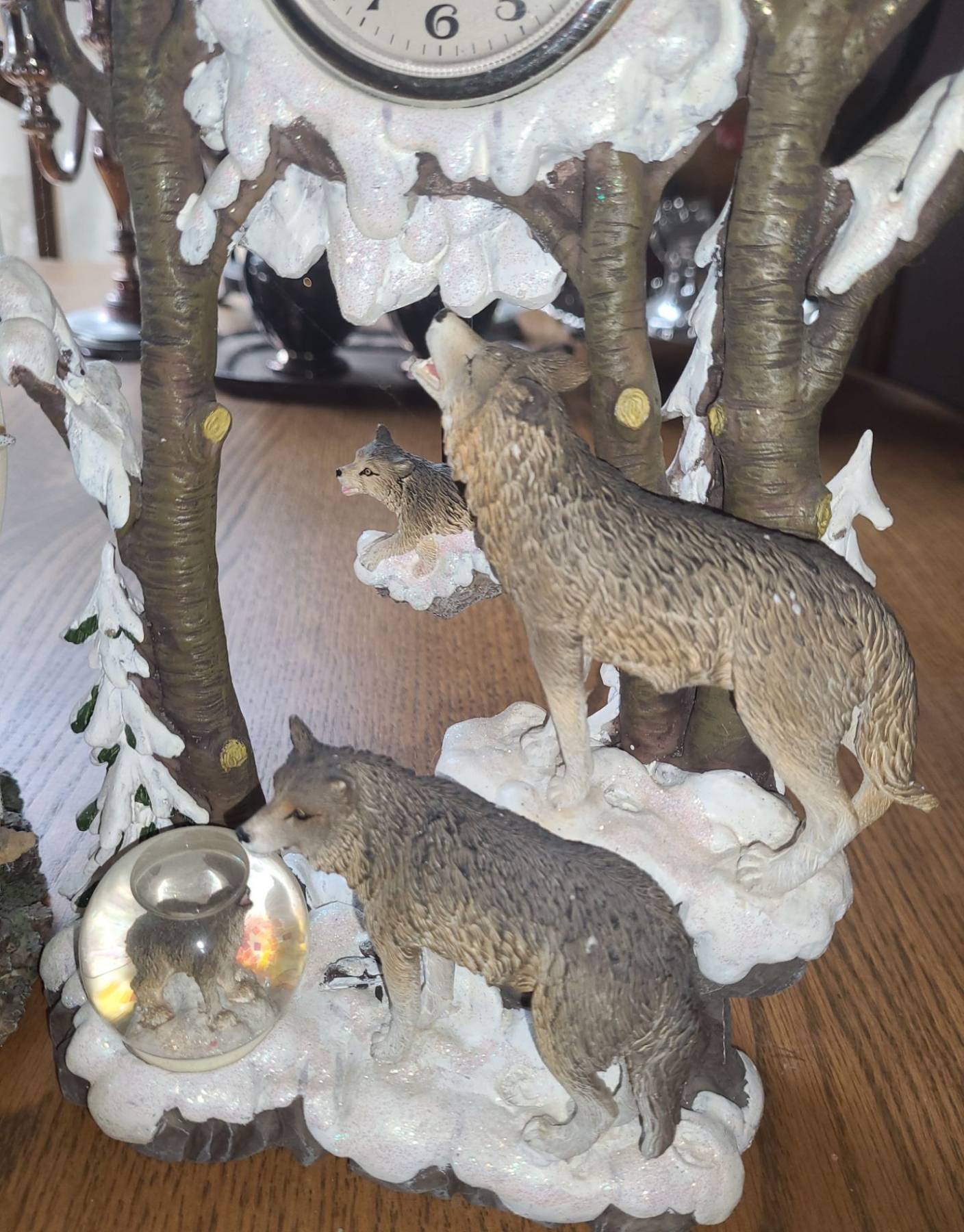 Resin Wolf Decor: Clock 12.5 T and Light 7 W, 7 T