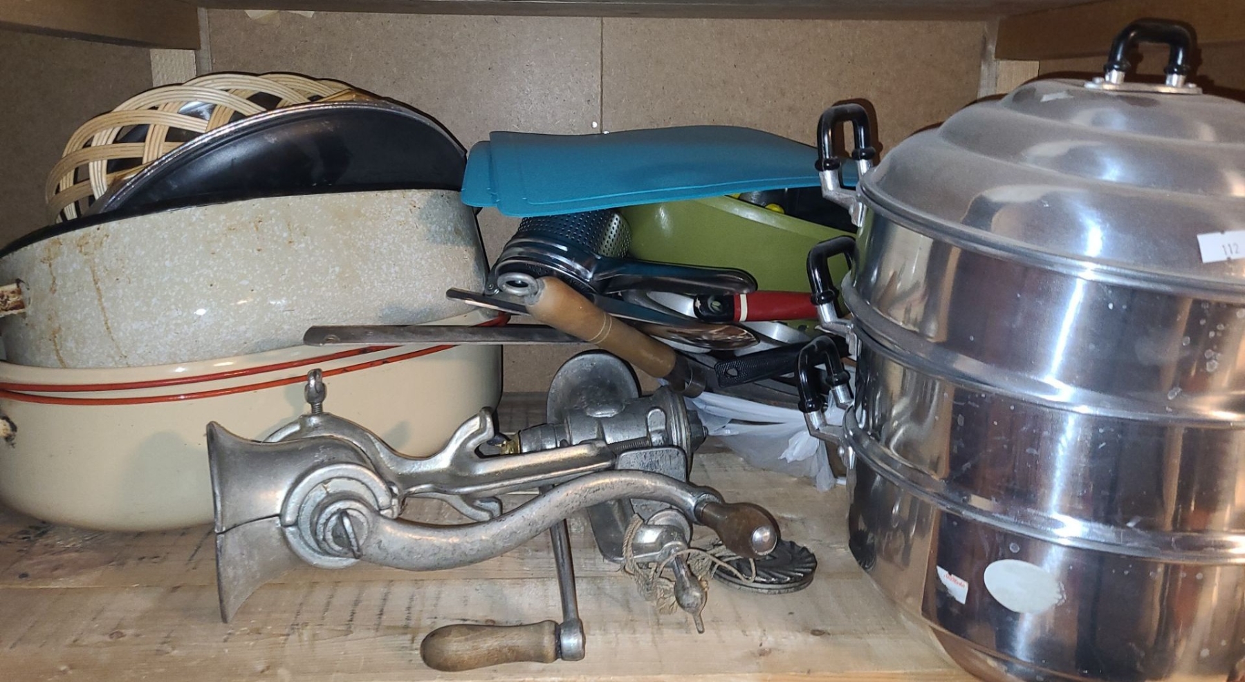 Roasting Pans, Antique Kitchen Grinders, 3 Level Stove Pot and More!