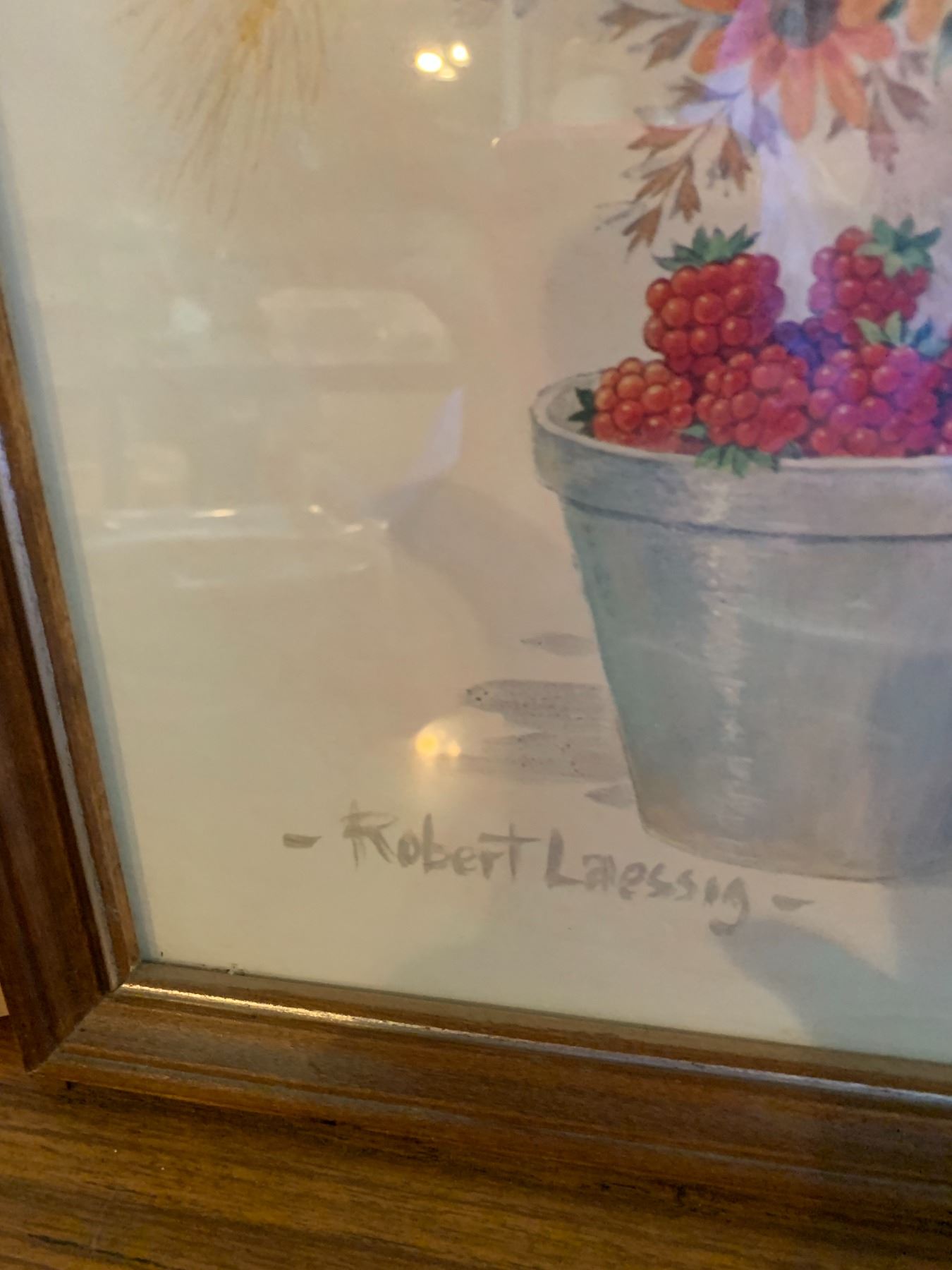 Robert Laessig Pansy Print, Pair of Poppy Prints, Vintage Picture Frames, Asst Wall Palques & Doggie Bowl (chipped)