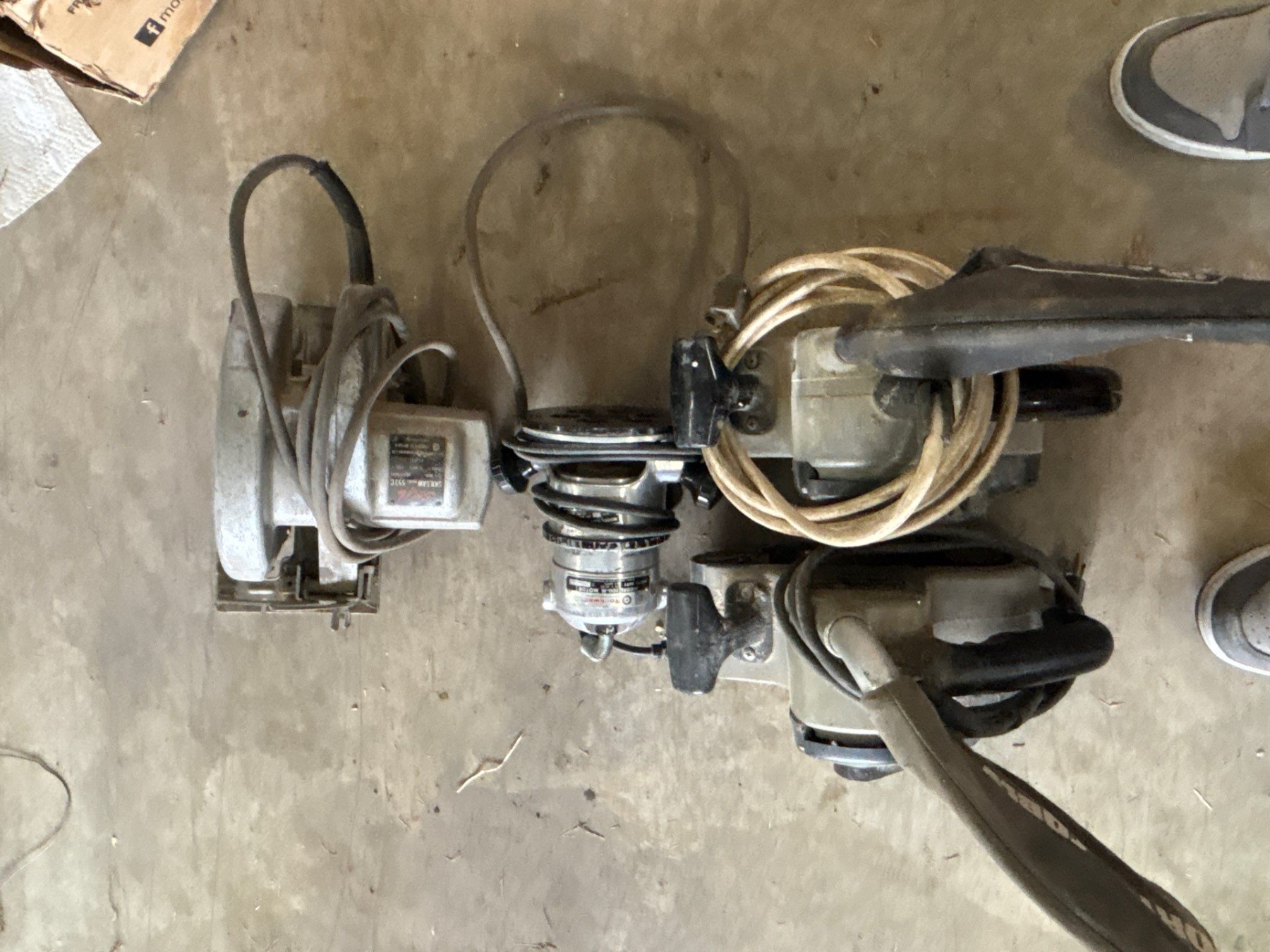 Rockwell sander and a Rockwell router with skill skills saw and powder cable belt, sander all working