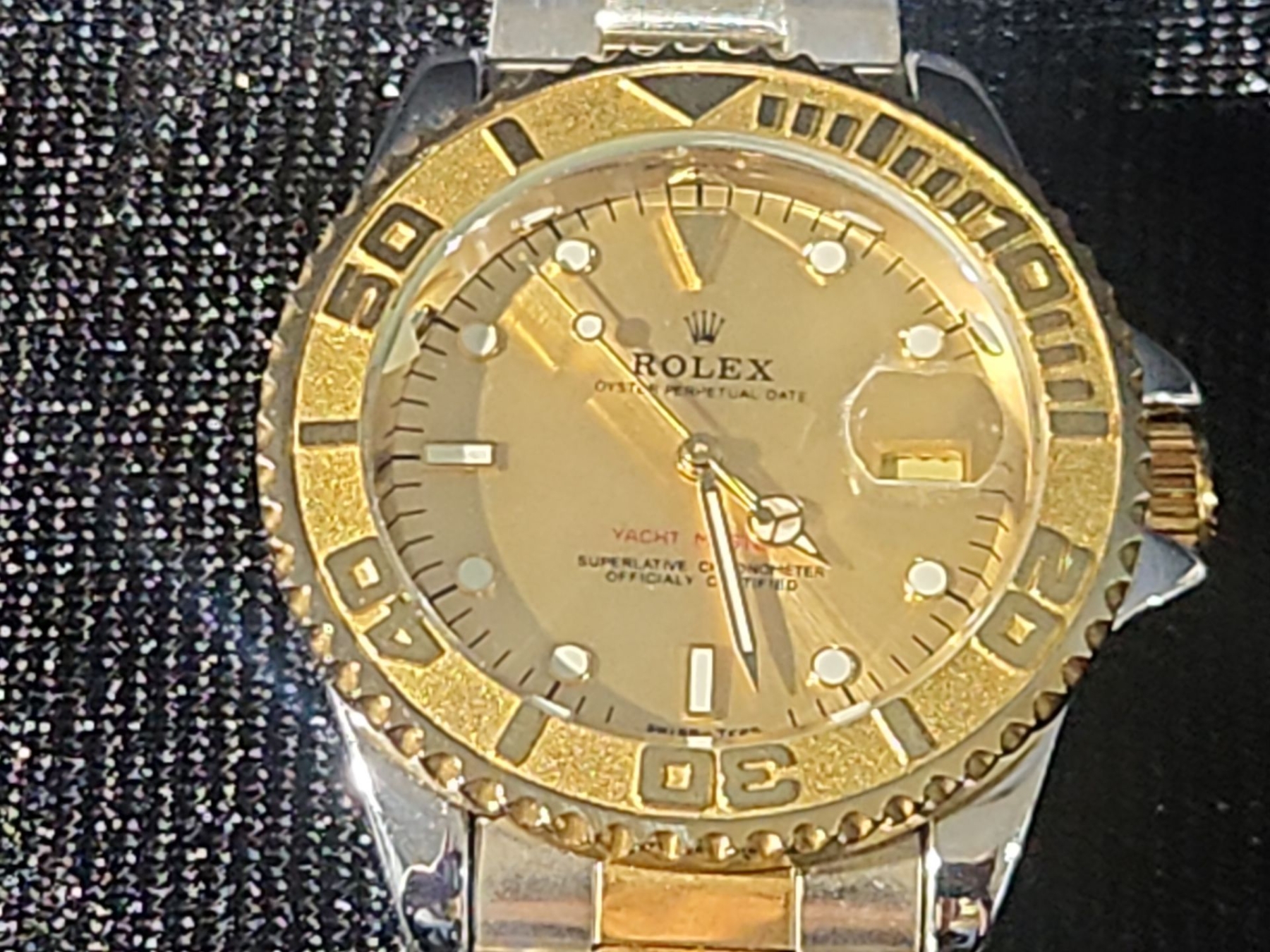 This Rolex is unverified for weather it is genuine or not. It mimics the appearance and style of the Rolex yacht-master 40mm steel and 18k yellow gold watch with a champagne dial. Great gift or for your own collection!