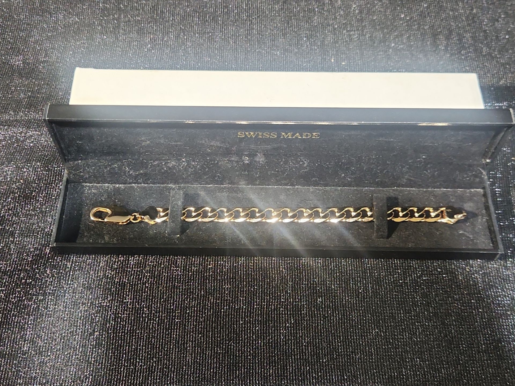 This beautiful chained bracelet is in a gorgeous rose gold tone. It is a bit weighty and would compliment anyone's wrist :) Great for gifts or to keep for yourself . Maker unknown by marking