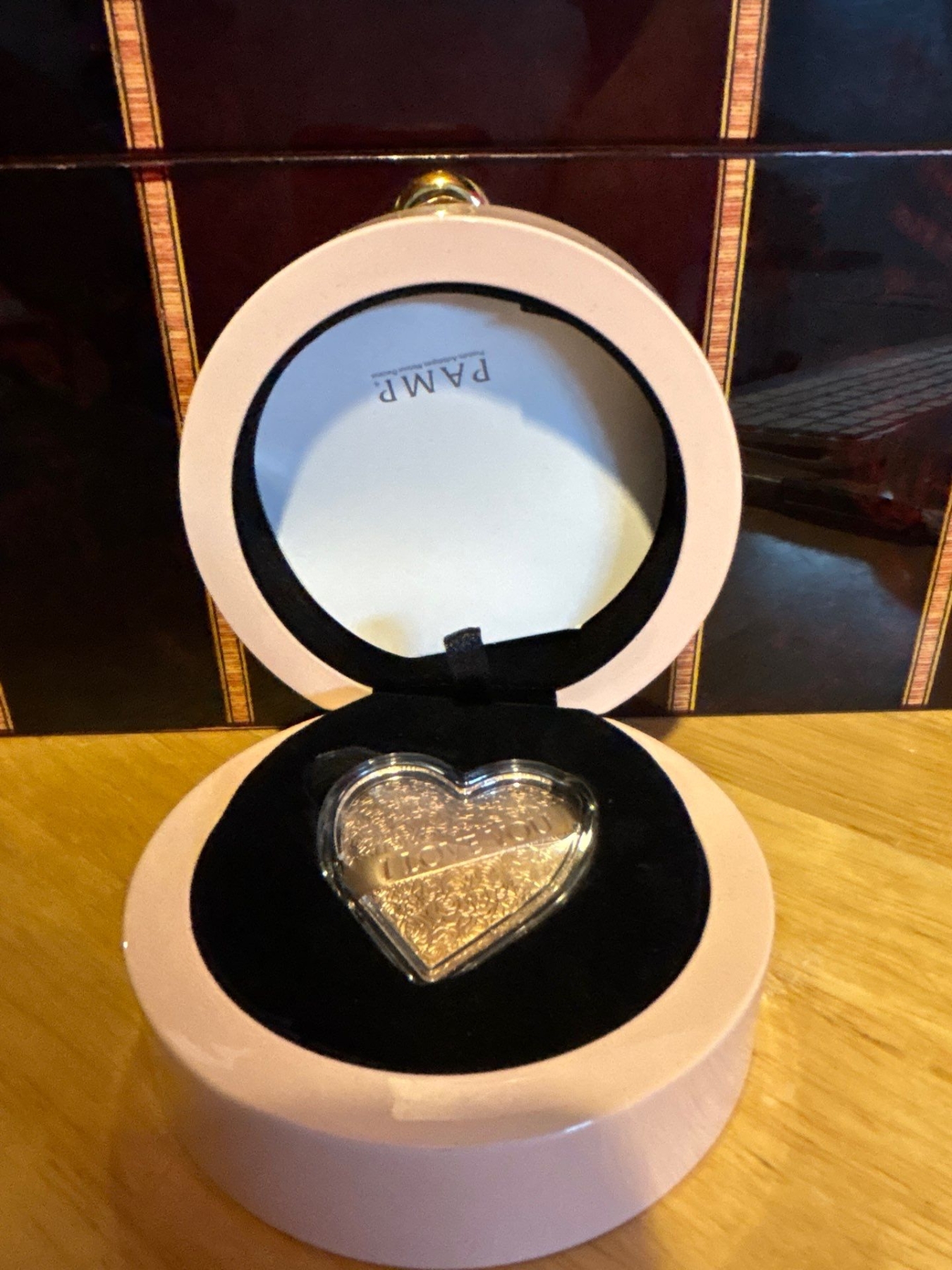 Encapsulated and presented within a beautiful, lacquer-like box with velour interior.