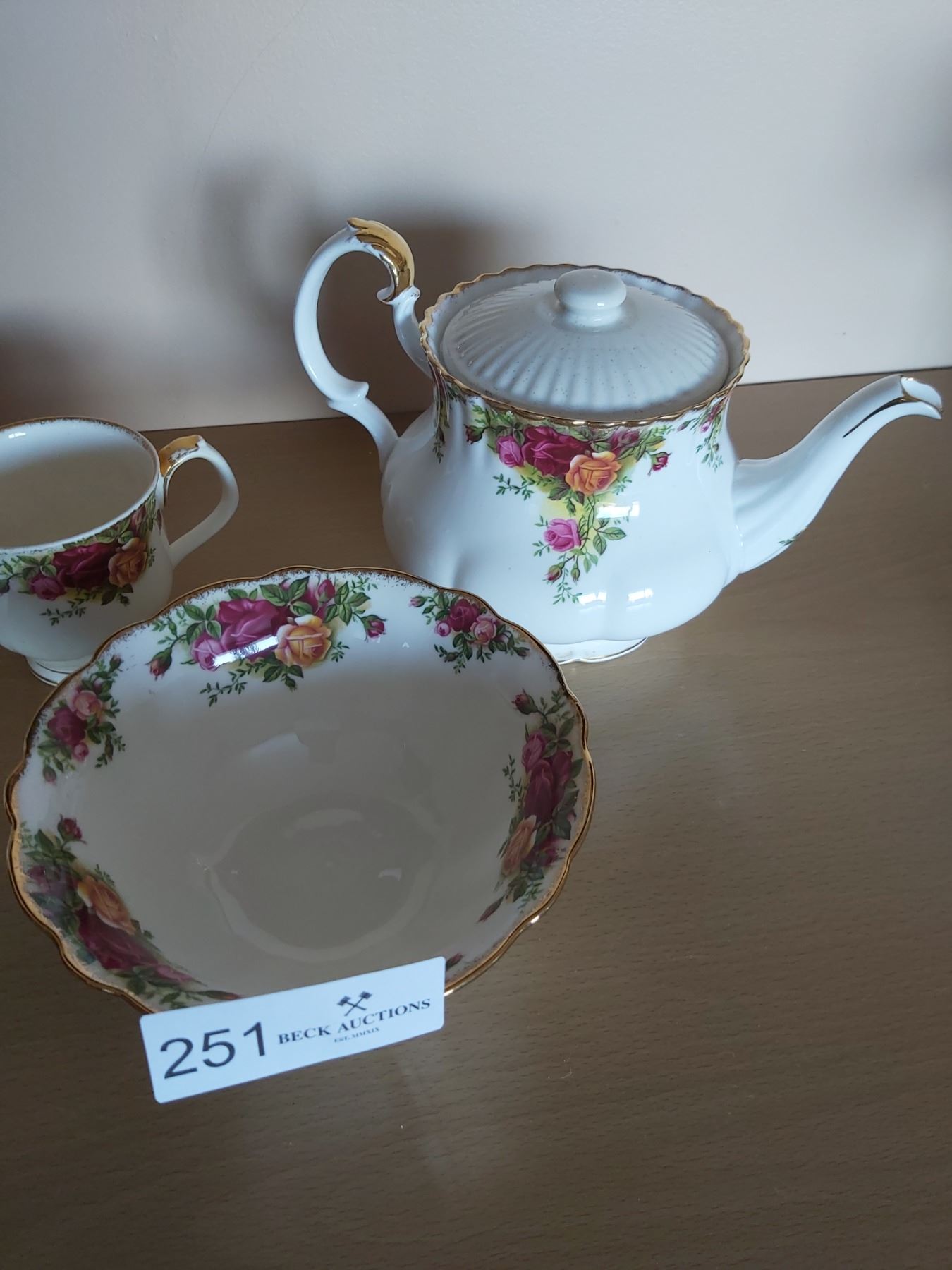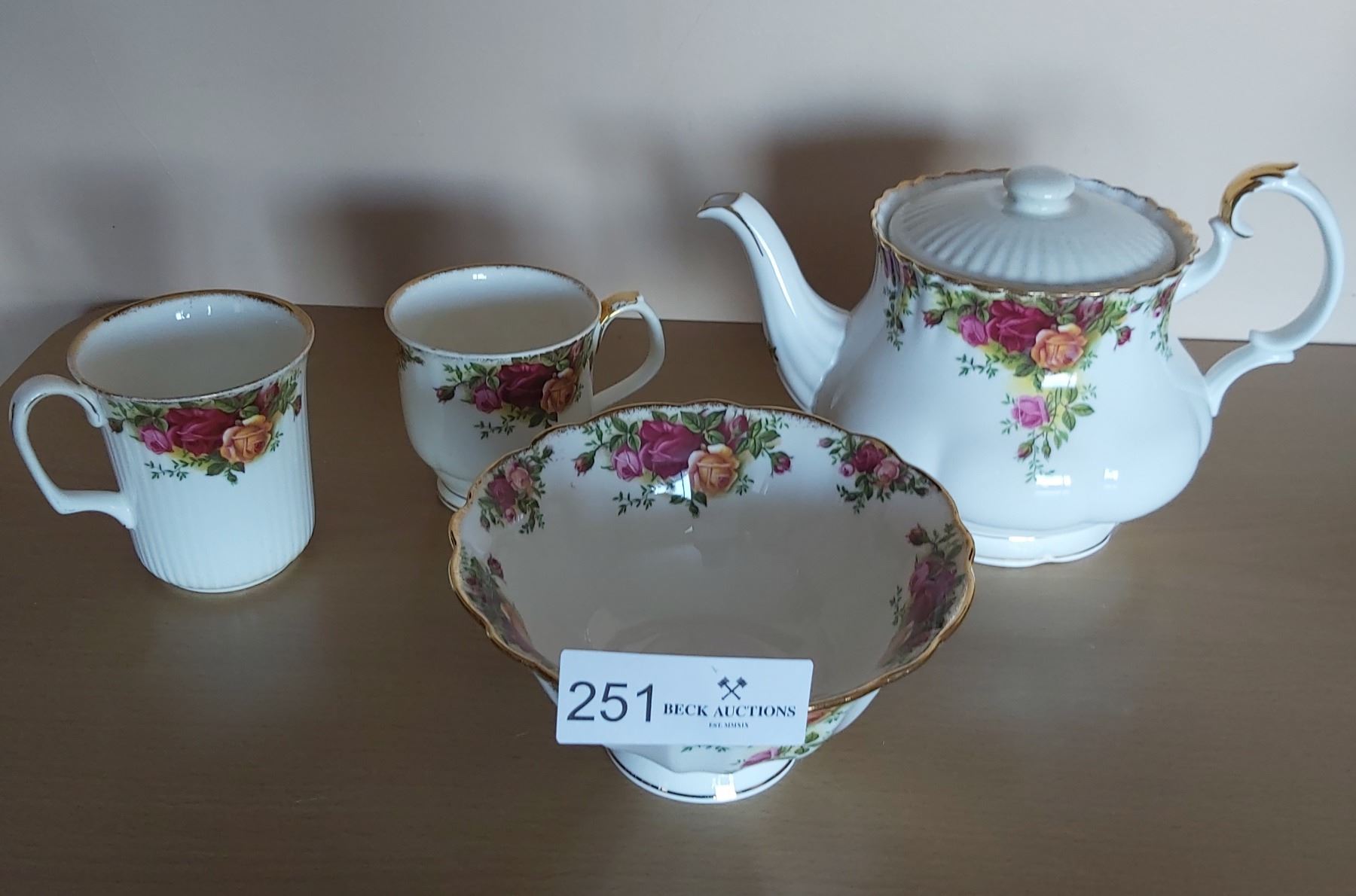 Tea Pot, Bowl, 1 coffee, 1 tea.