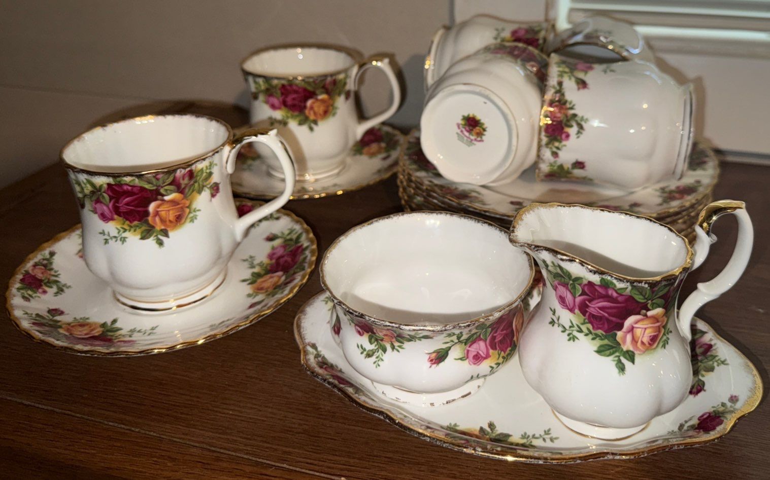 Royal Albert - 'Old Country Roses' 6 Tea Cups 6 Saucers Cream & Sugar