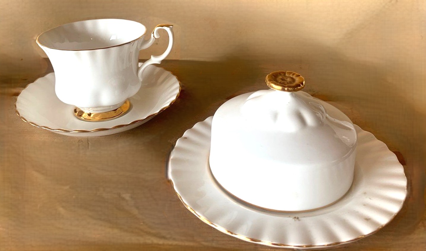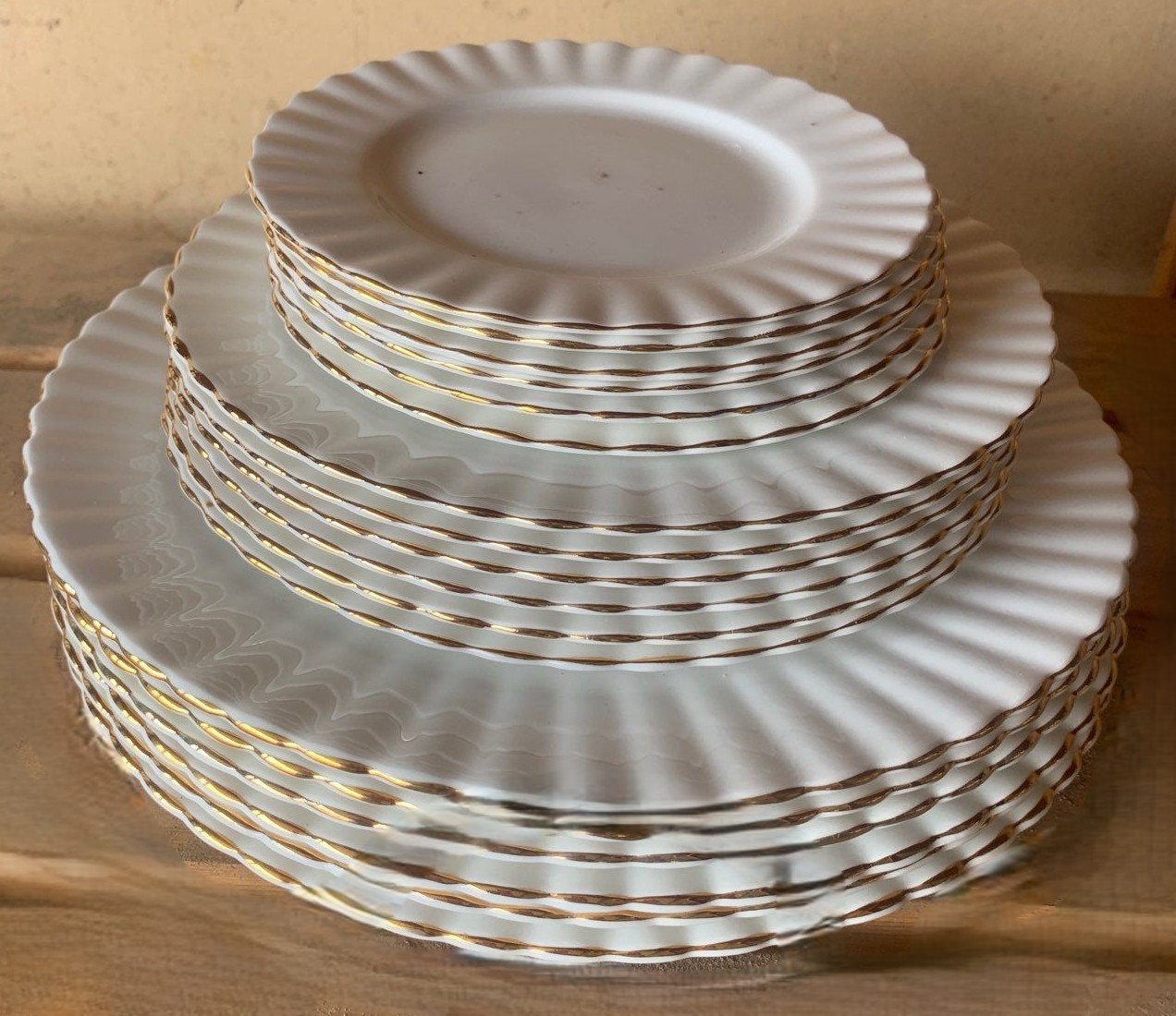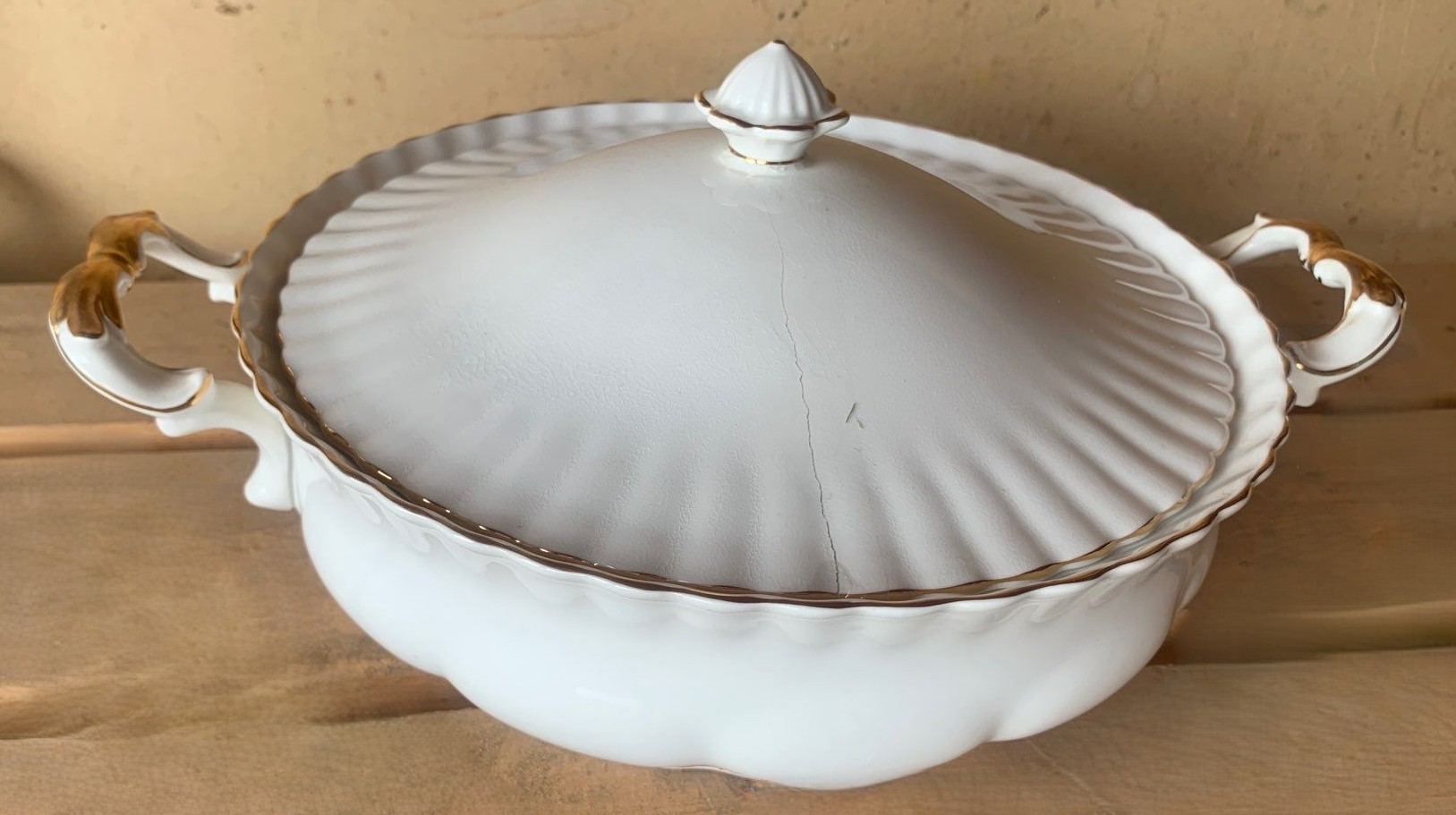 Also incl Plates, Serving Platter, Mugs & Butter Dish. Casserole Dish has crack in Lid