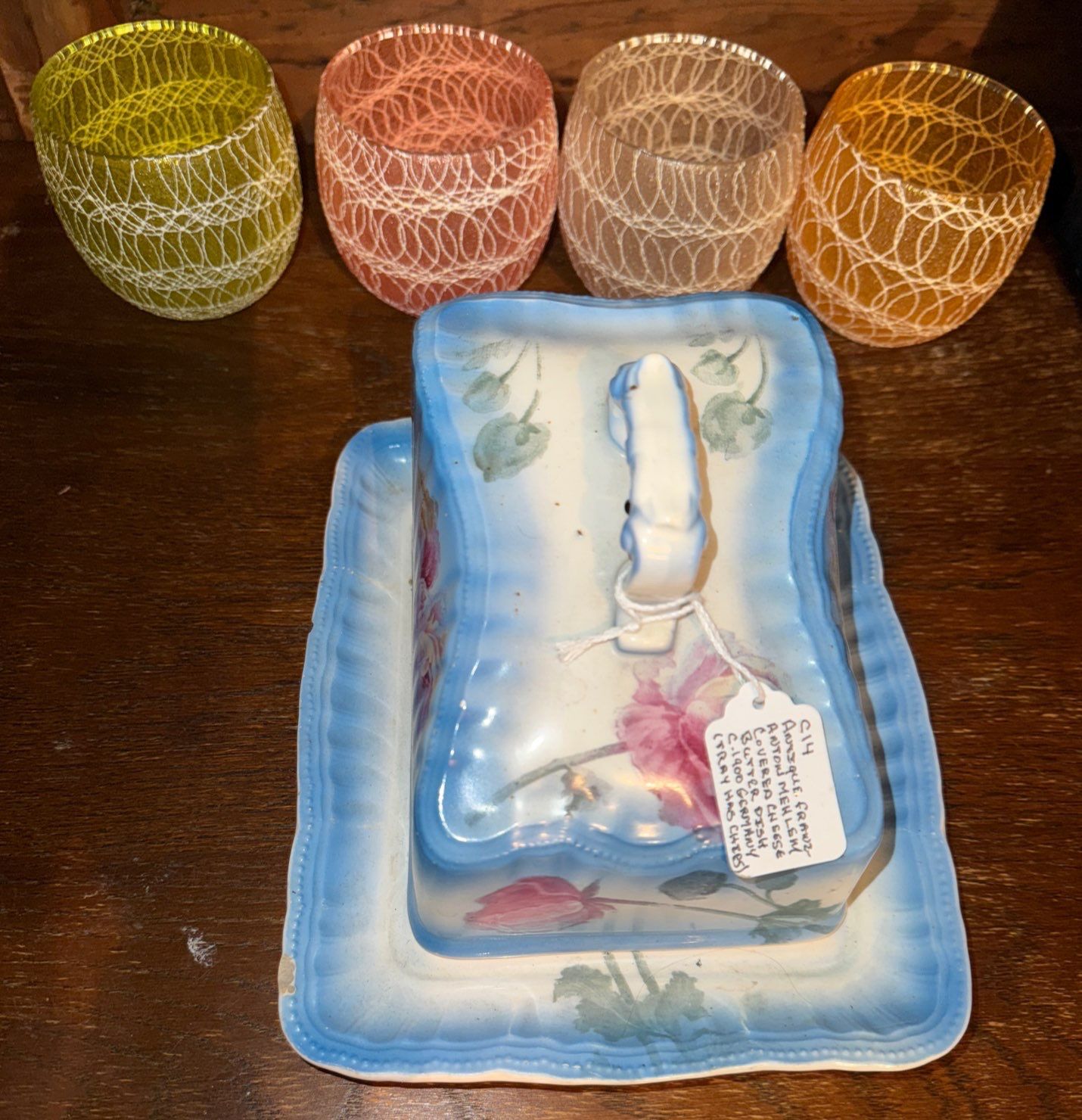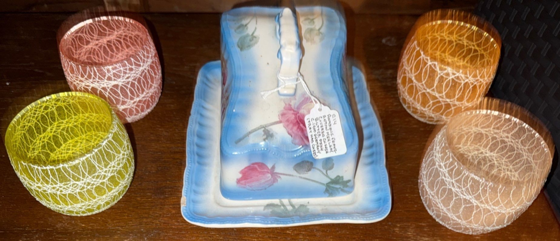 Royal Bonn Cheese Keeper (Small Chip) & Color Craft Spaghetti String Roly-Poly Glass