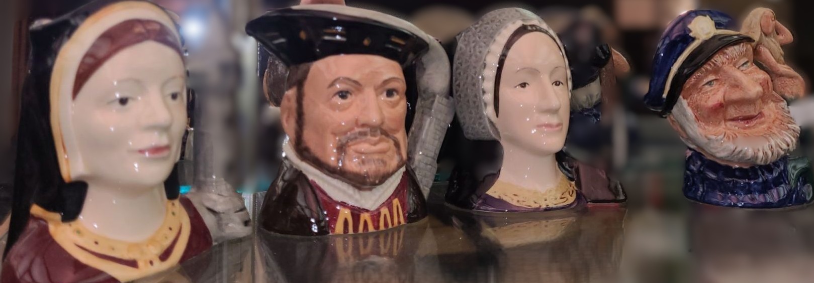 Royal Doulton: Catherine of Aragon, Henry VIII, Anne Boleyn, Old Salt, 4 T