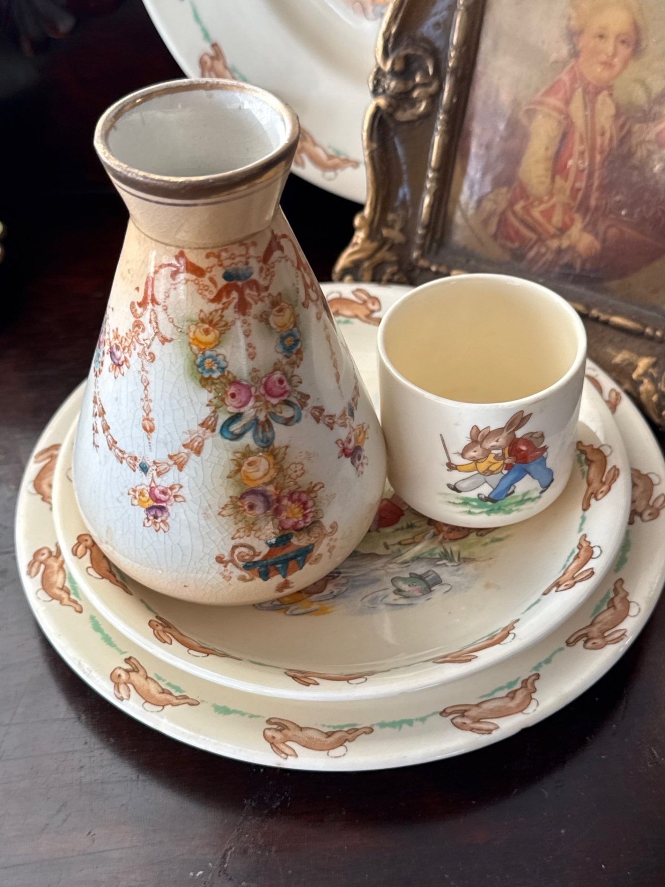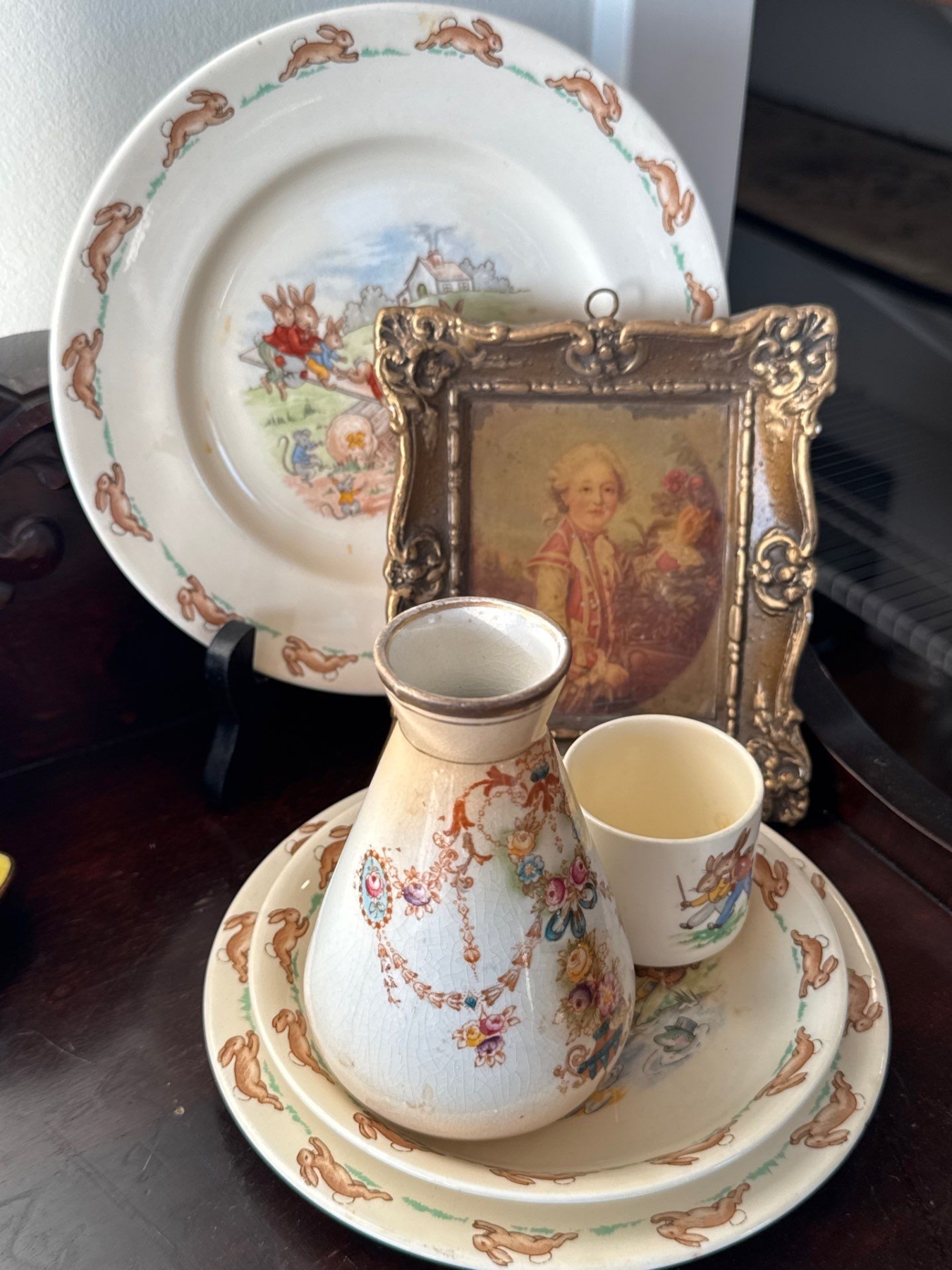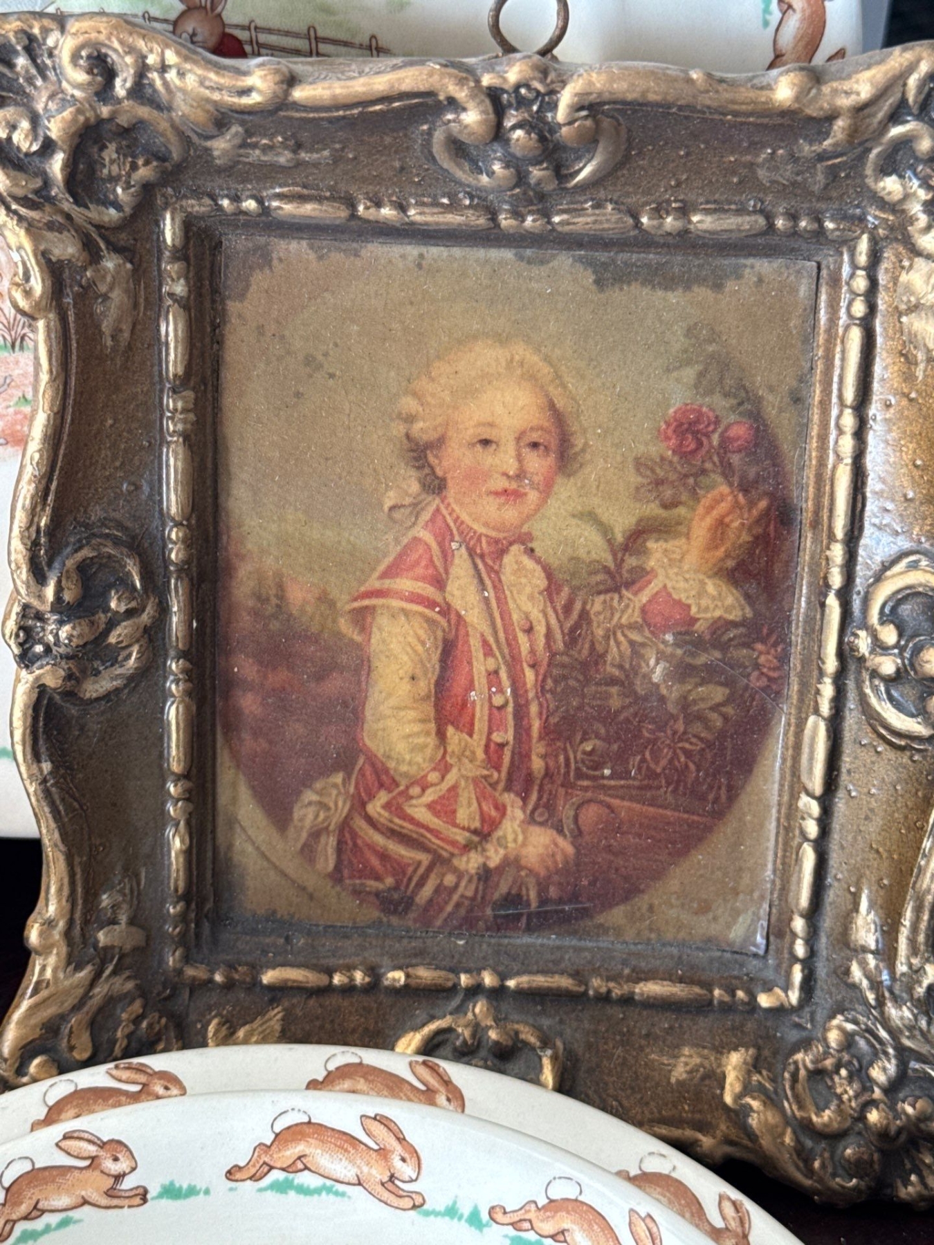 Royal Doulton's - 'Bunnykins' China w/ Antique Portrait In Gold Gilt Frame 4T