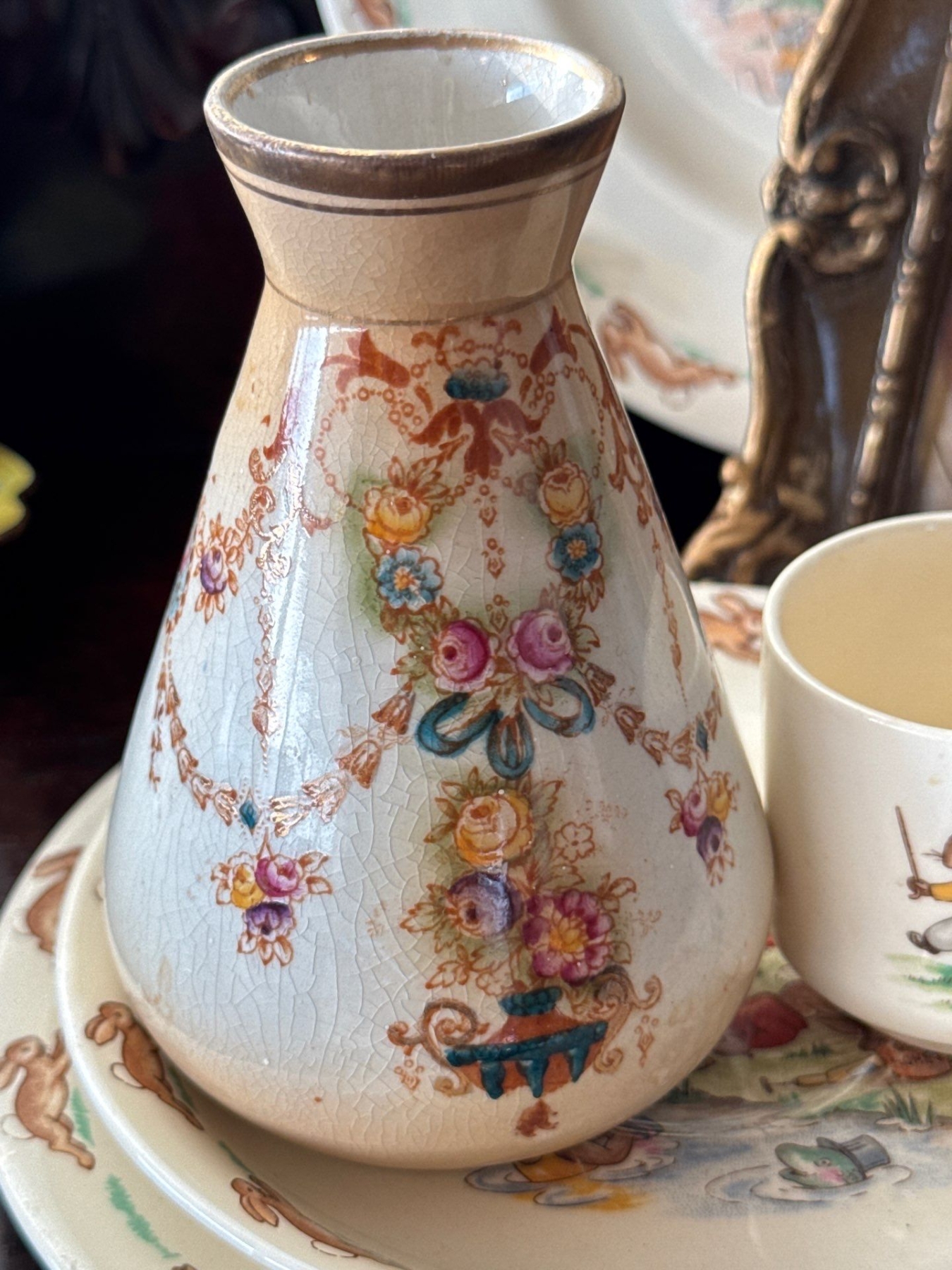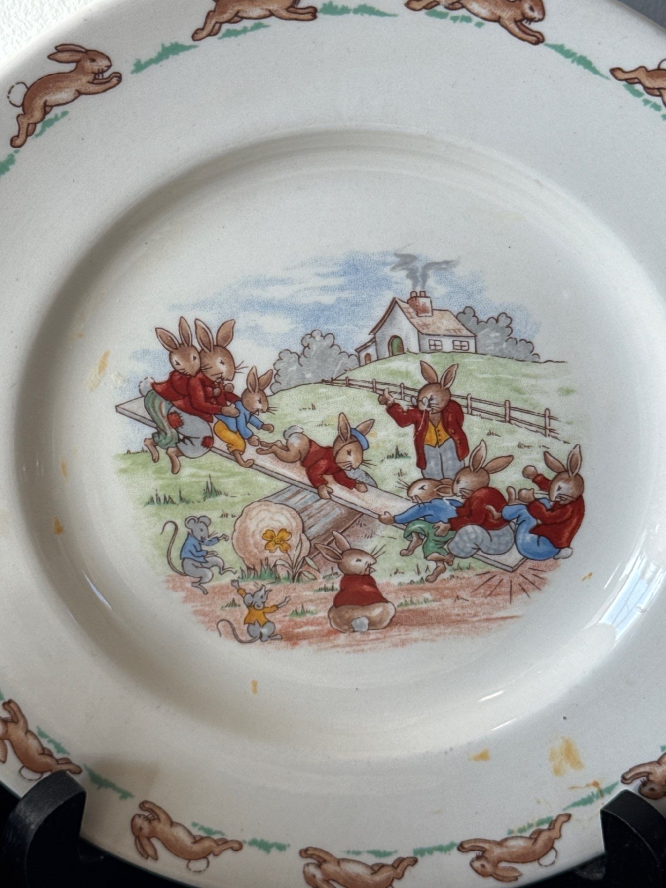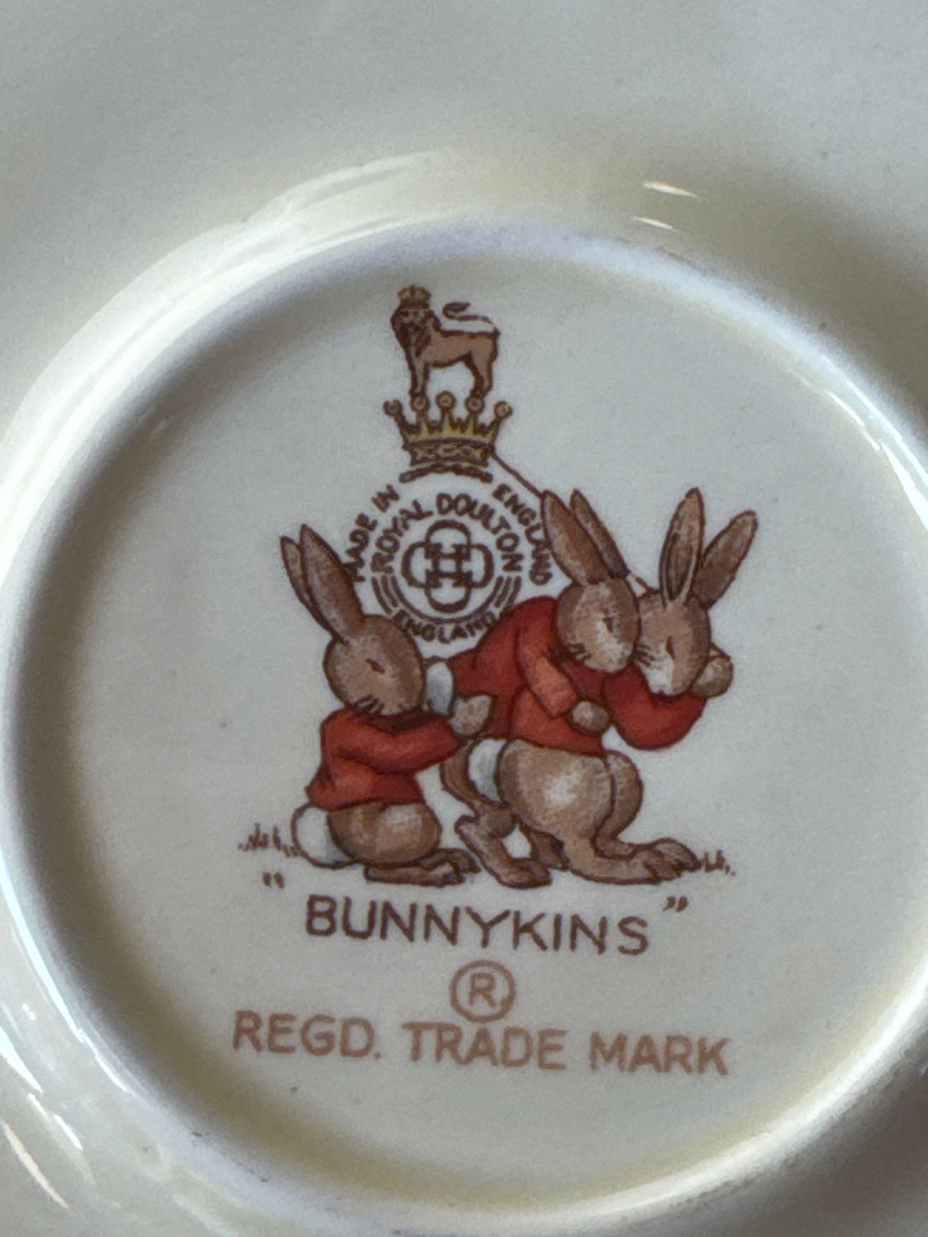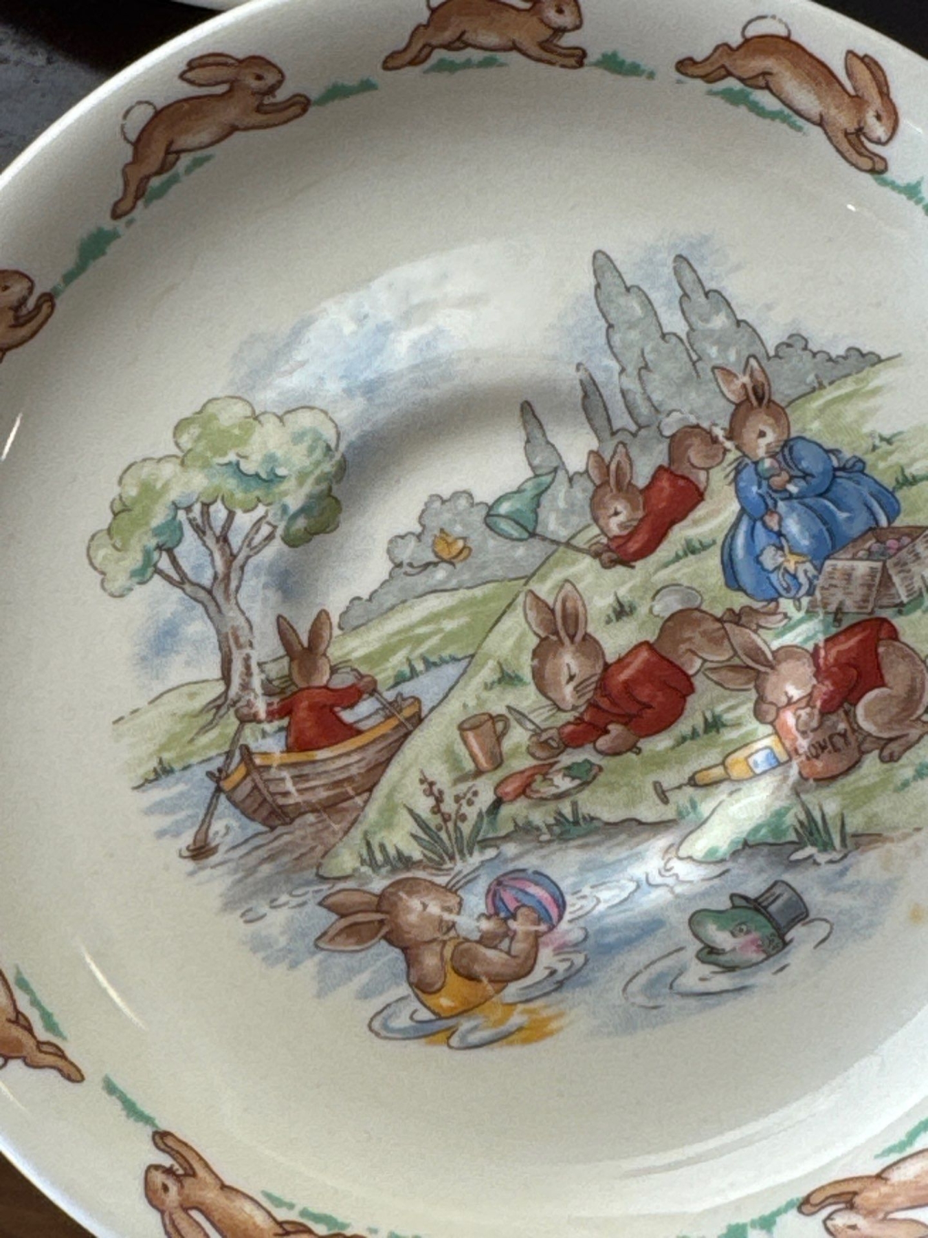 Royal Doulton's - 'Bunnykins' China w/ Antique Portrait In Gold Gilt Frame 4T