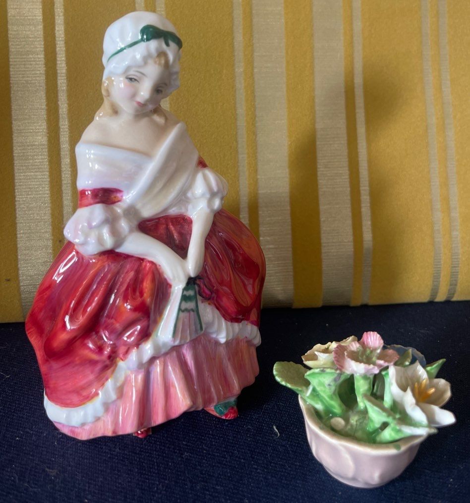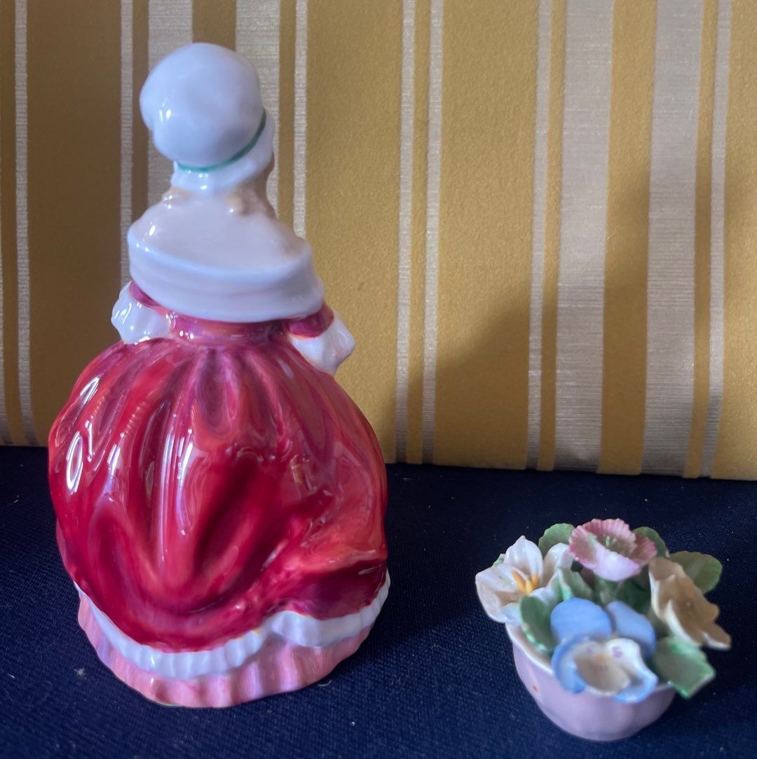Royal Doulton's "Peggy" Figurine w/ Coalport Floral Decor 8" tall