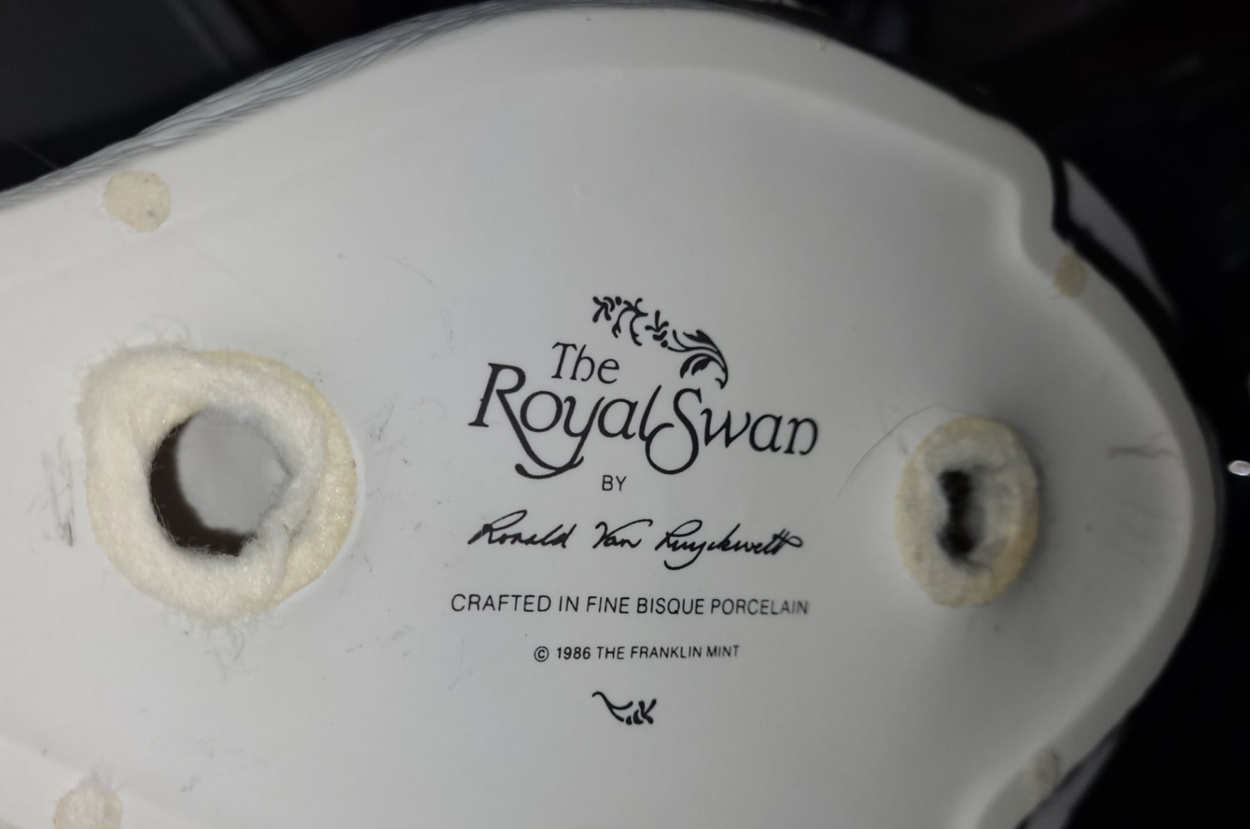 "Royal Swan" by Ronald van Ruyckevelt 12 W Base, Franklin Mint