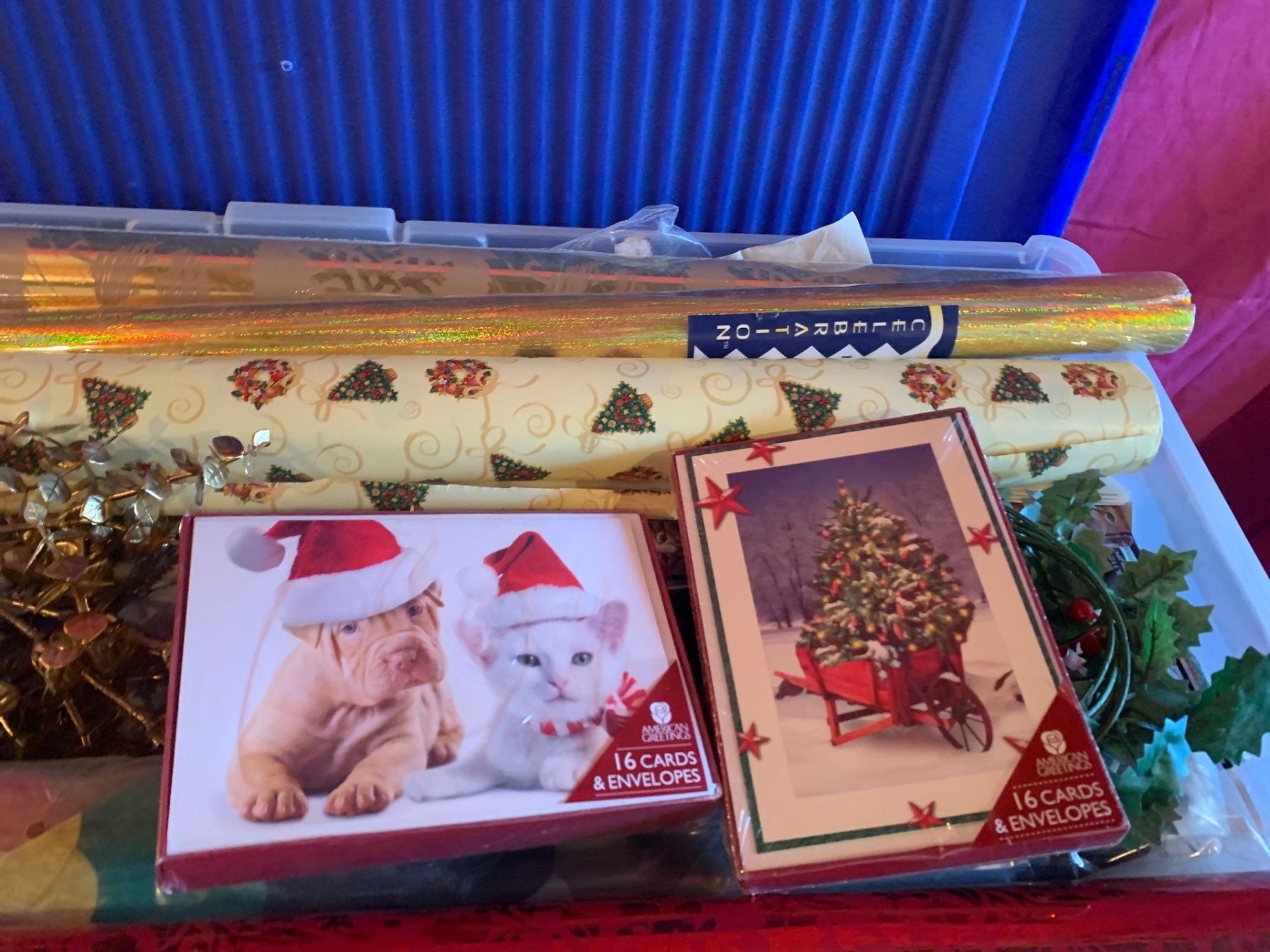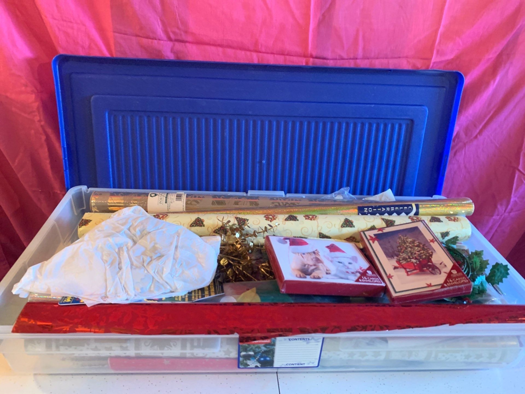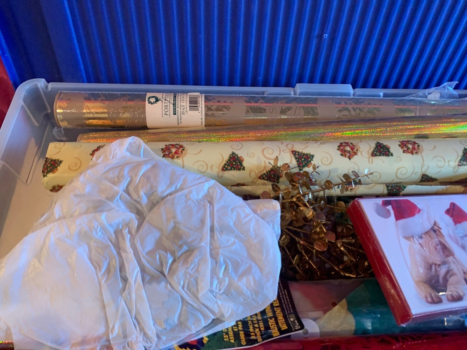 Rubbermaid Full of Christmas Supplies, wrapping paper, cards, gift bags and more