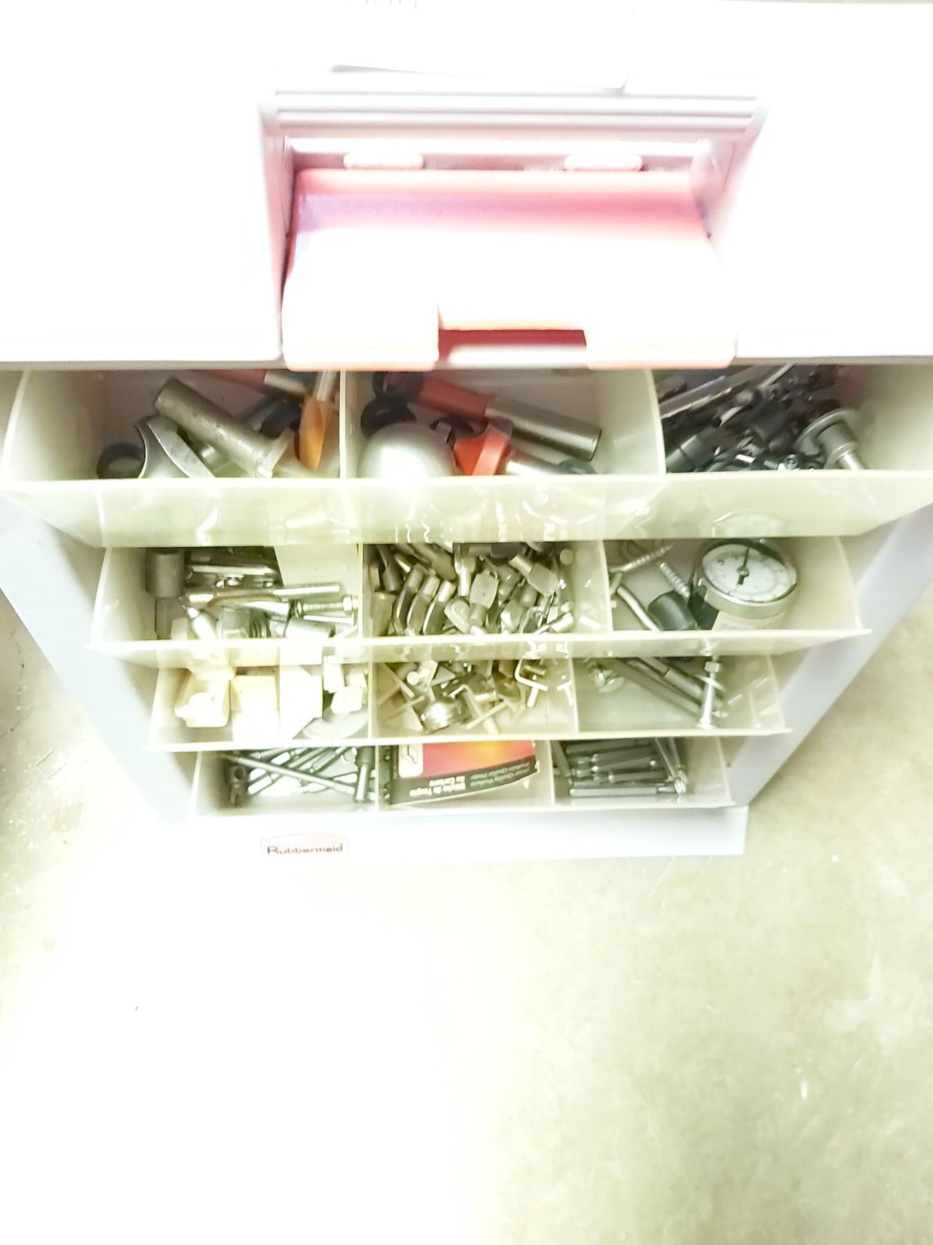 Rubbermaid Hardware Organizer with Contents & 4 Piece Shop Organizer
