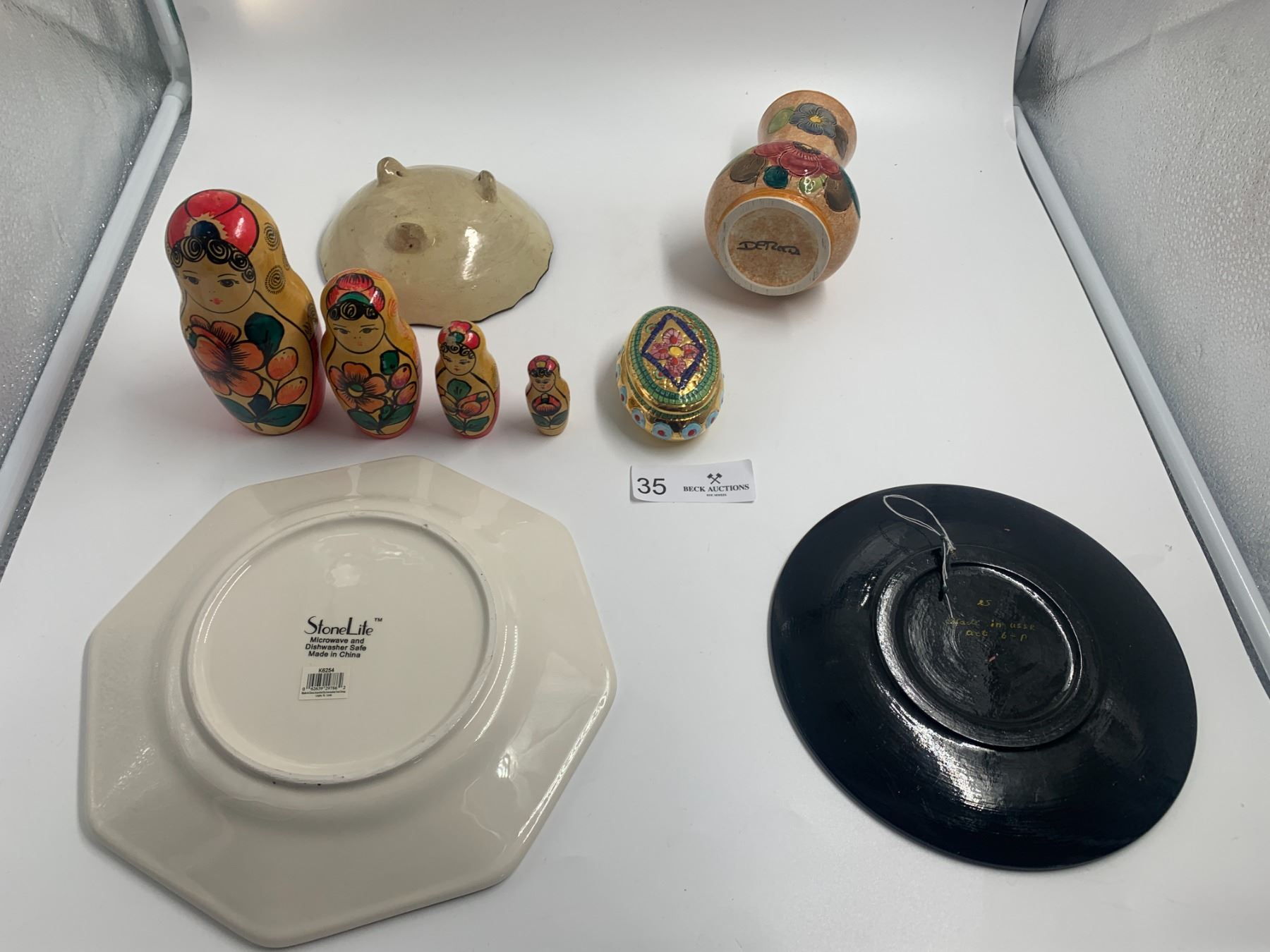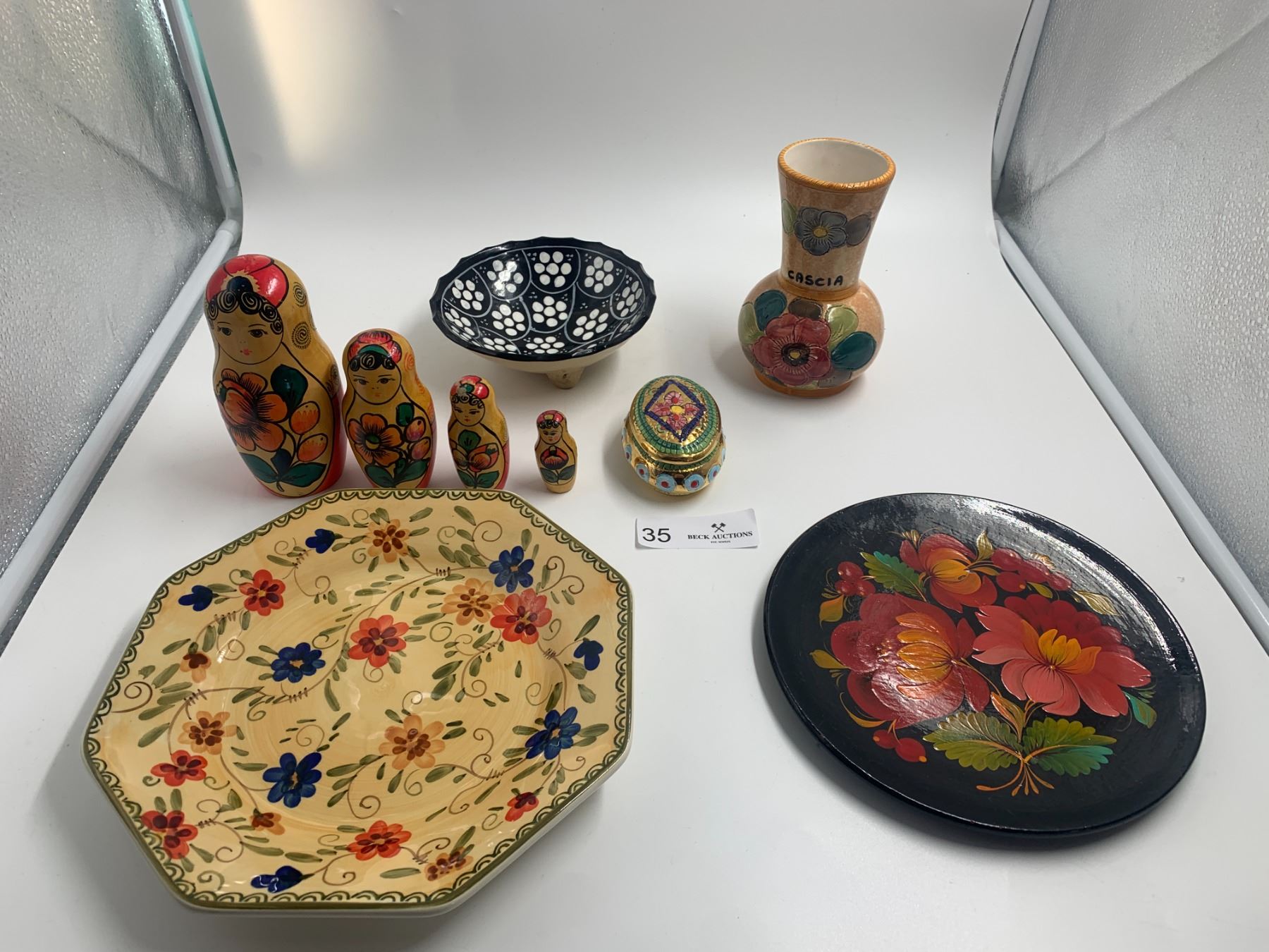Russian Nesting Dolls, Wooden Floral Design Plate (USSR Made), Ceramic Plate, Vase, Bowl, and More!