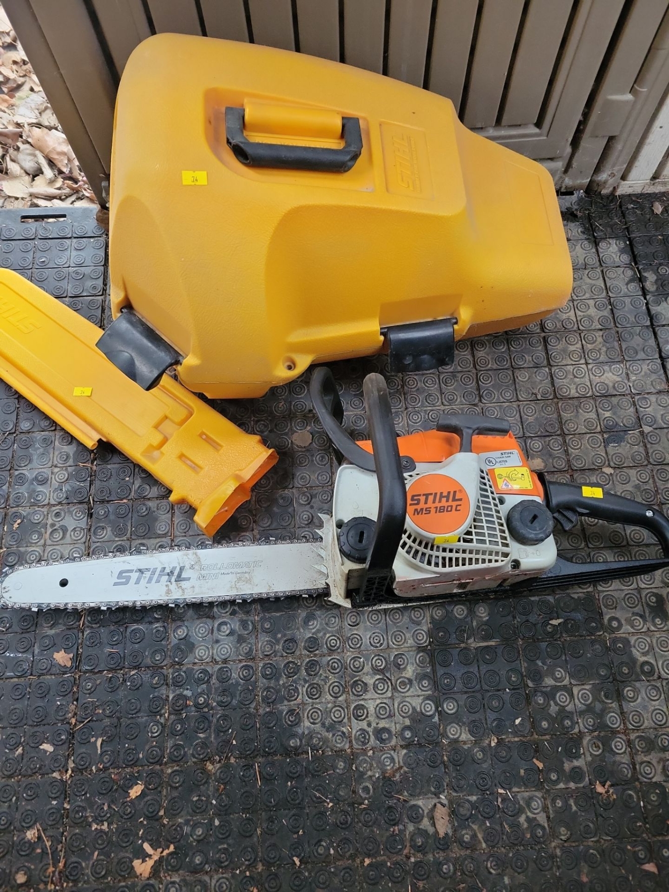 STIHL MS 180 Chainsaw w/ Hard Shell Travel Case & Sheath