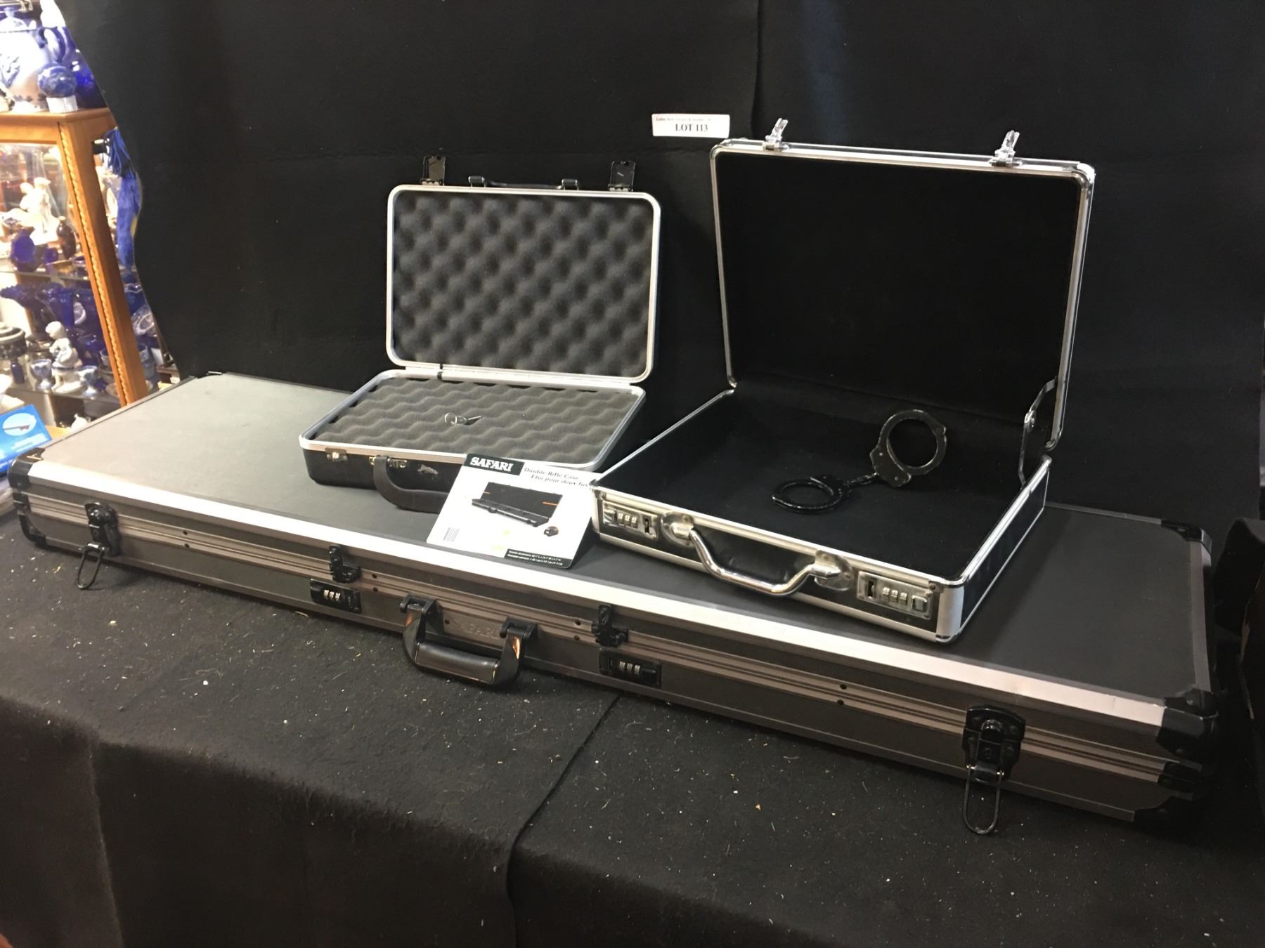 Safari Double Rifle Case, Deskocil Gun Case w Keys & Gun Case w Generic Hand Cuffs