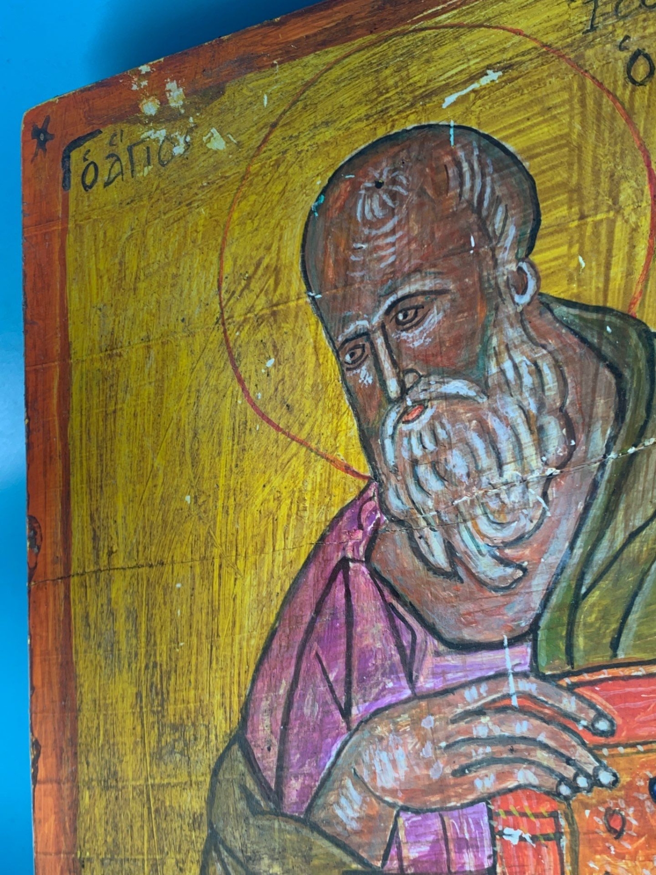 Saint John the Theologian Painted on Wooden Board - 9x9