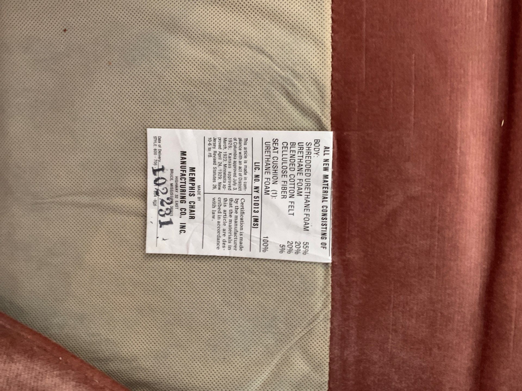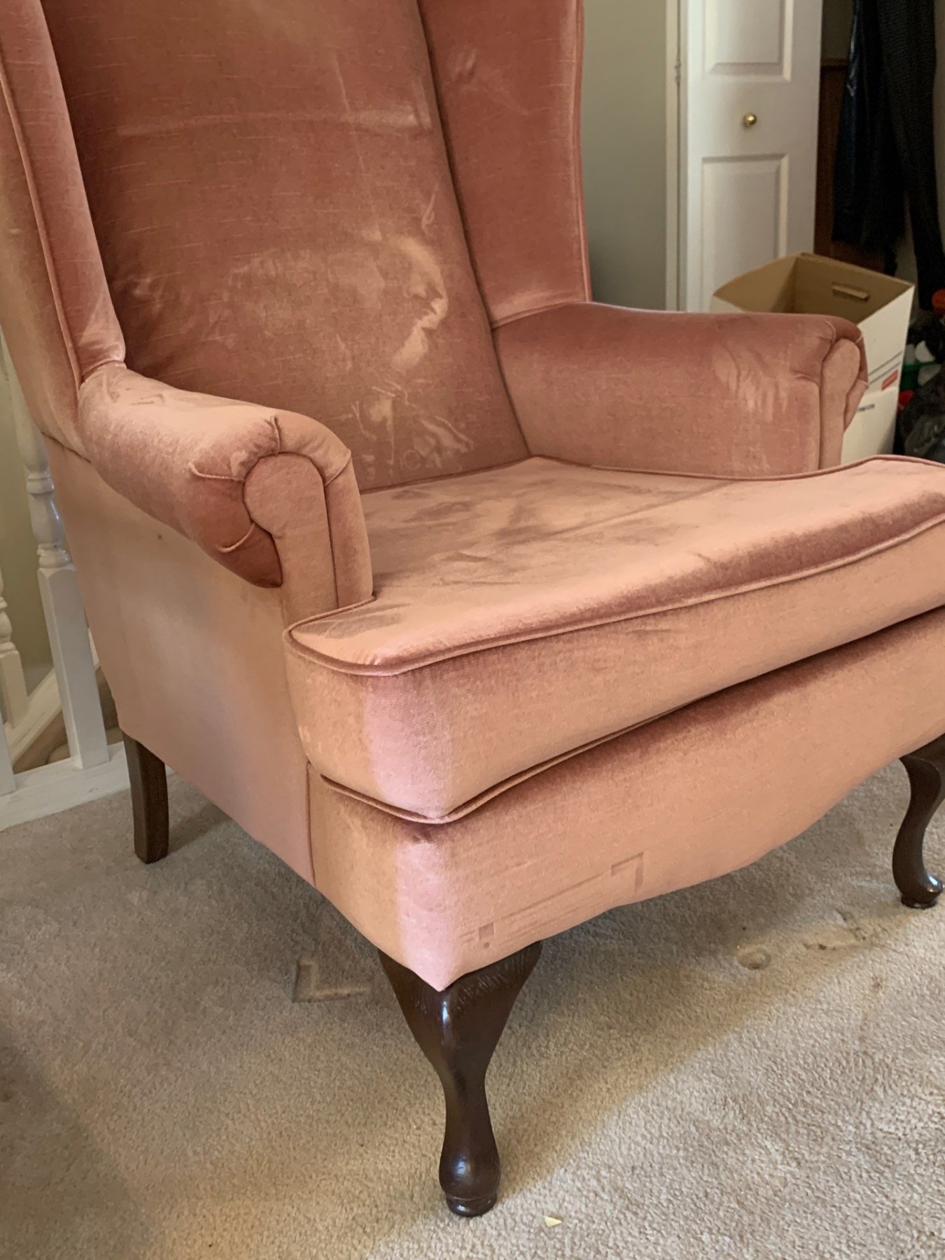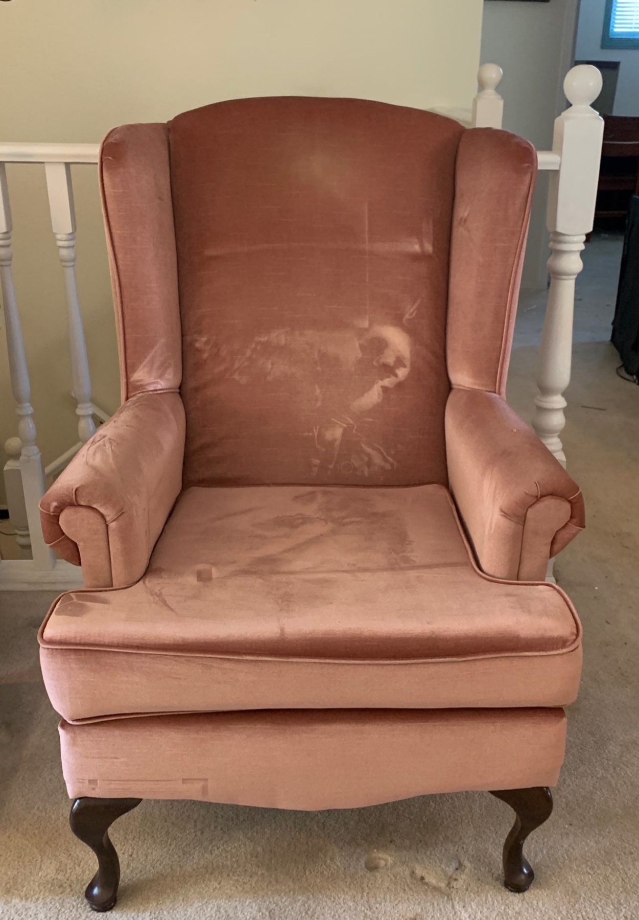 Salmon Colored Crushed Velvet Wingback Chair 30x34x40