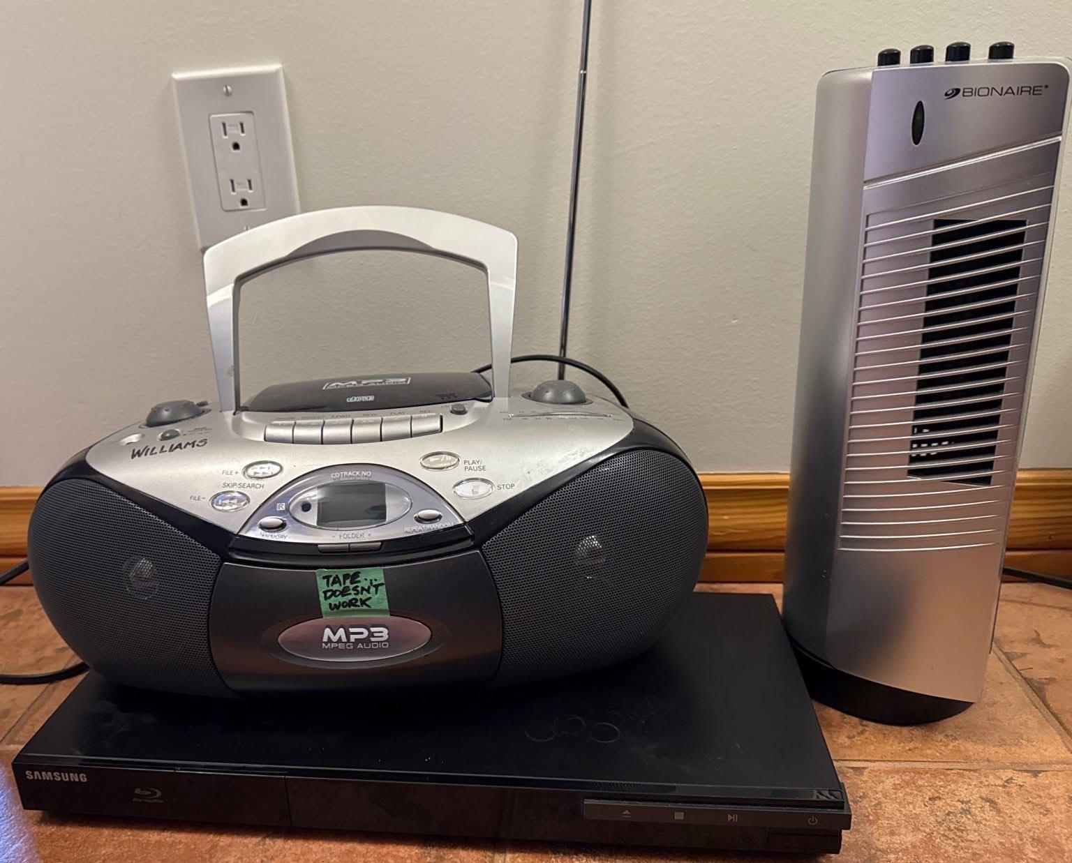 Samsung BluRay Model BD-D5300, Bionaire BT17Z,  SANYO CD Player (Tape Broken)