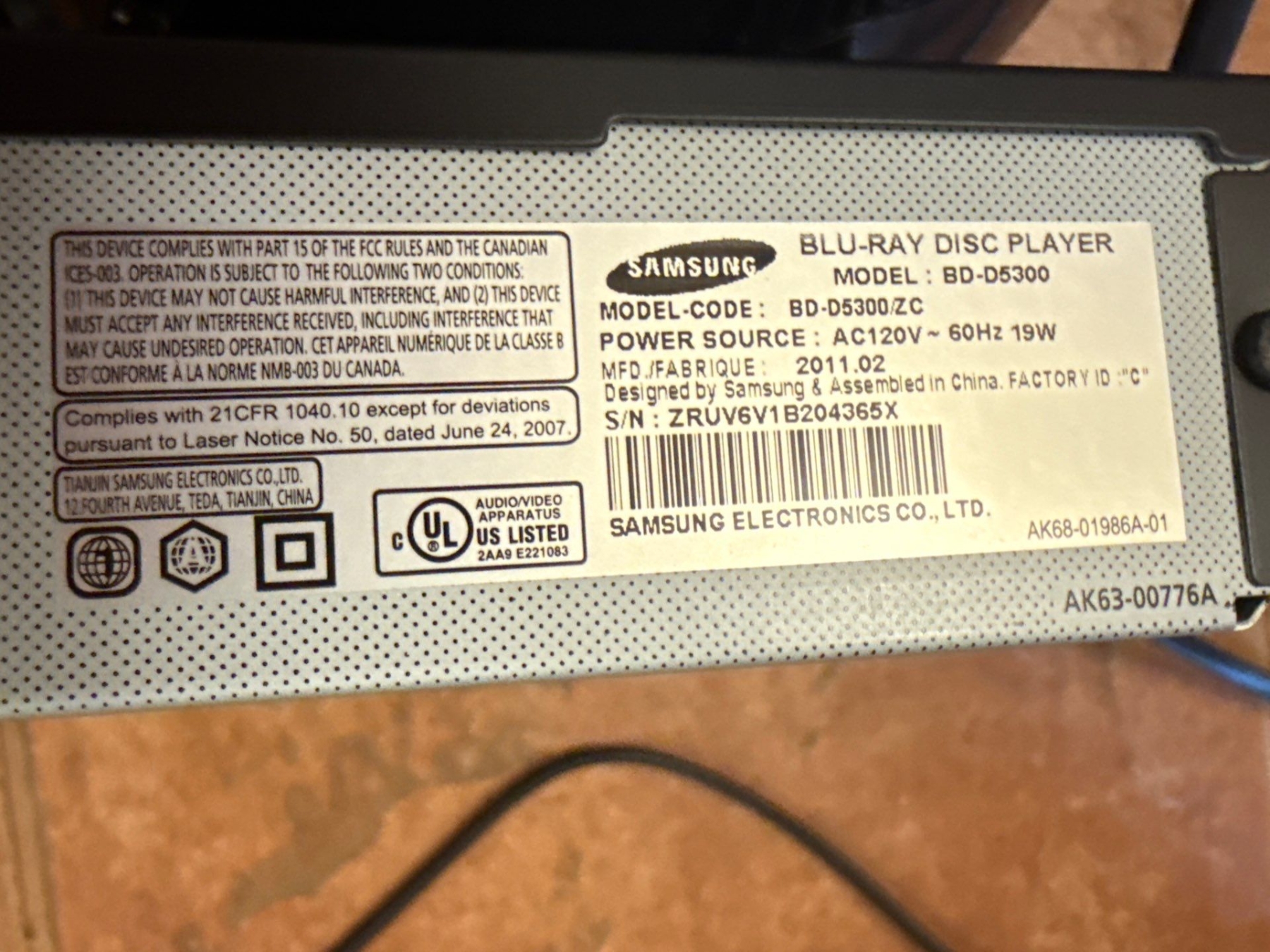 Samsung BluRay Model BD-D5300, Bionaire BT17Z, SANYO CD Player (Tape Broken)