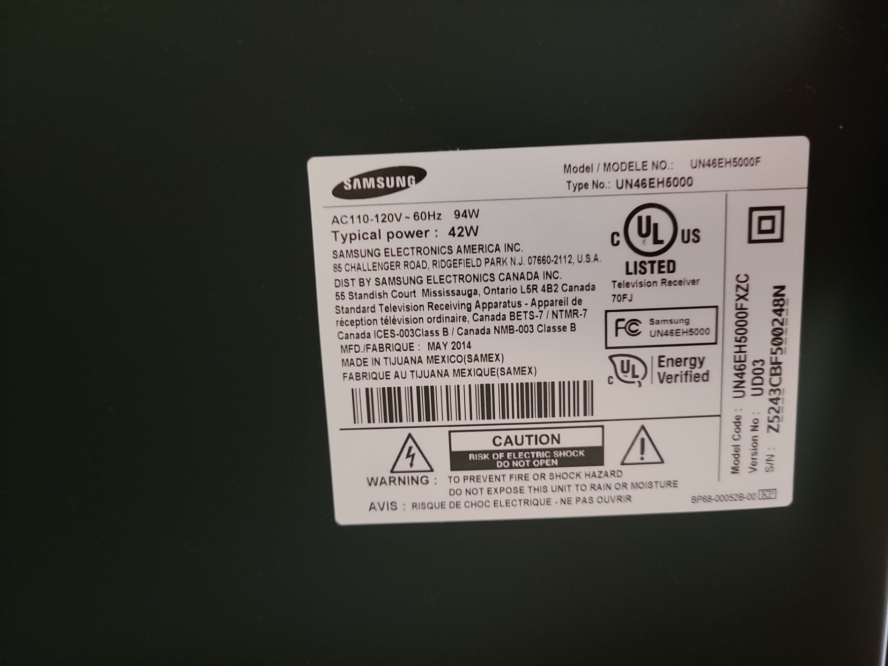 Samsung TV Model No. UN46EH5000F - 40W, 24T