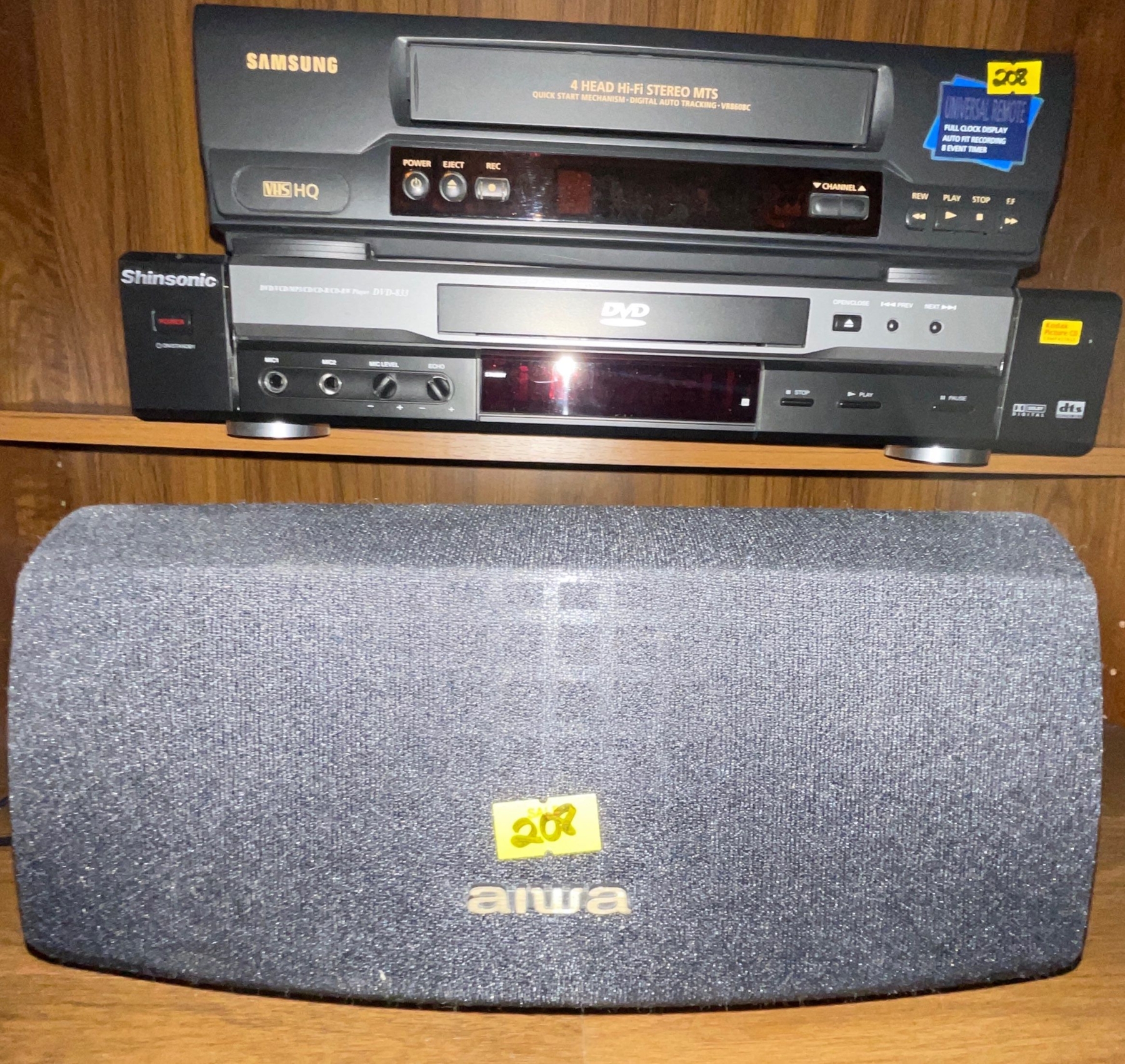 Samsung VHS Player w/ Shansonic DVD Console AIWA Speakers & More