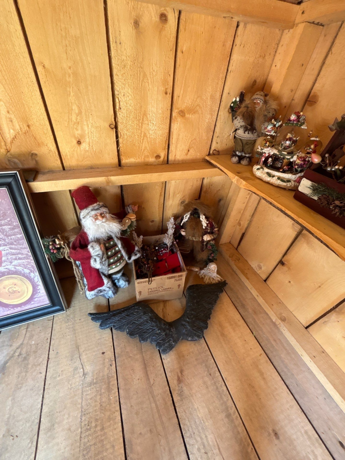 Santa Statue With Angel Wings W24" H14" & Box Of Misc Christmas Items.