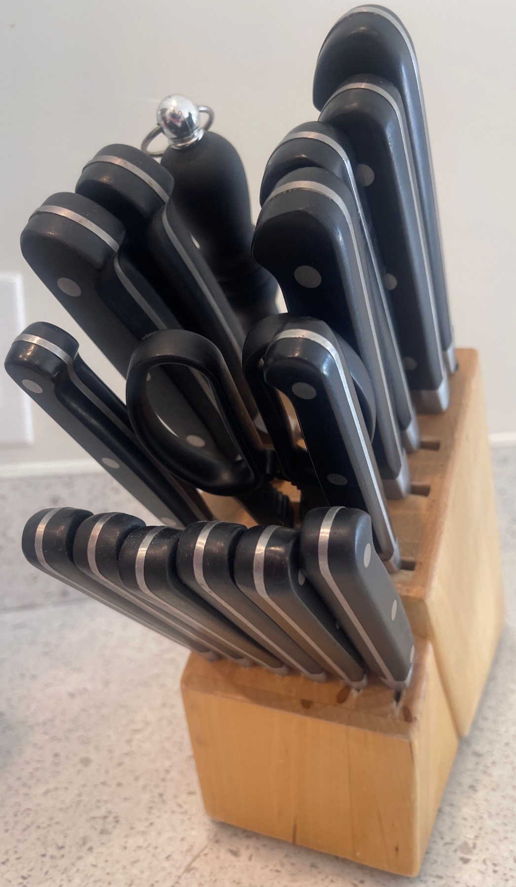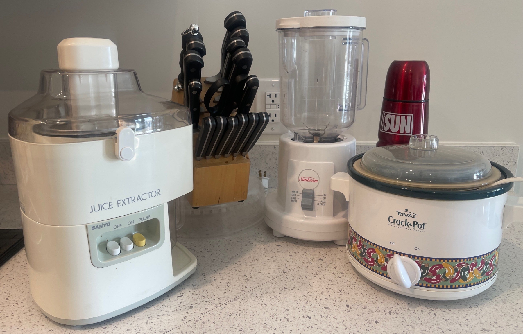 Sanyo Juice Extractor, Sun beam Blender, Rival Crock-Pot, Red Thermos & Pandero Knife Block Full Of Knives
