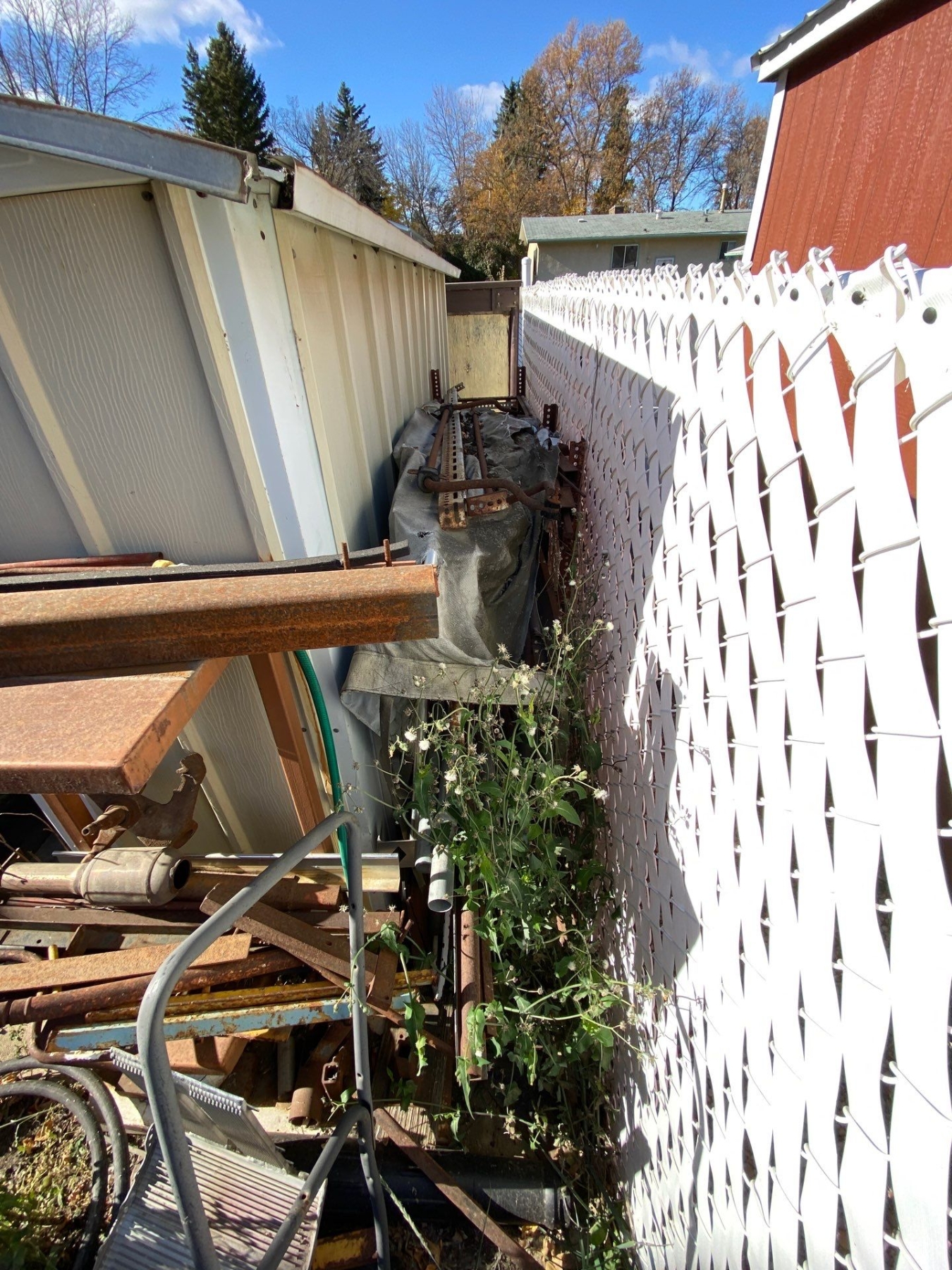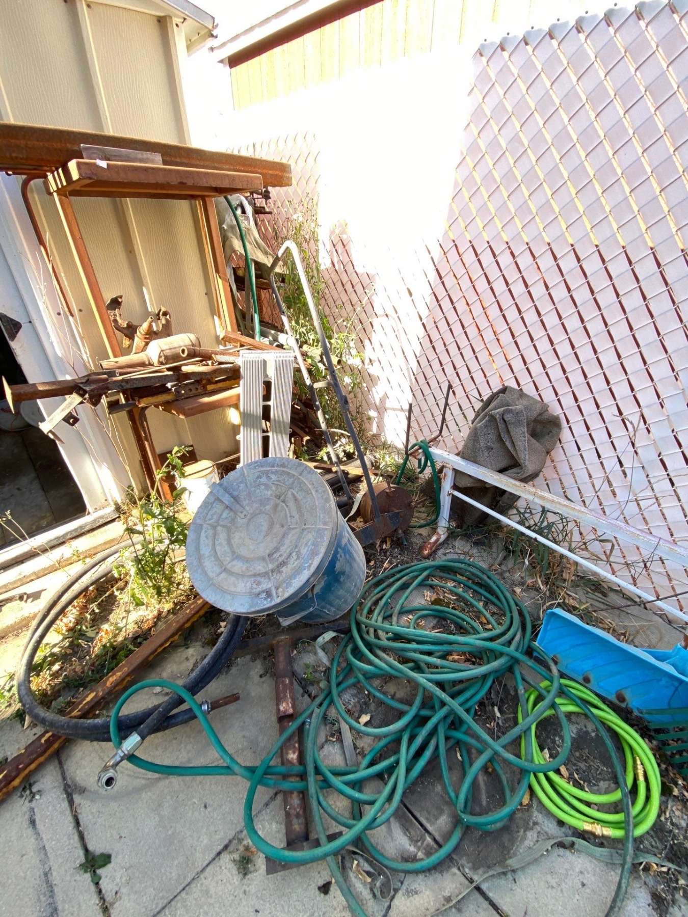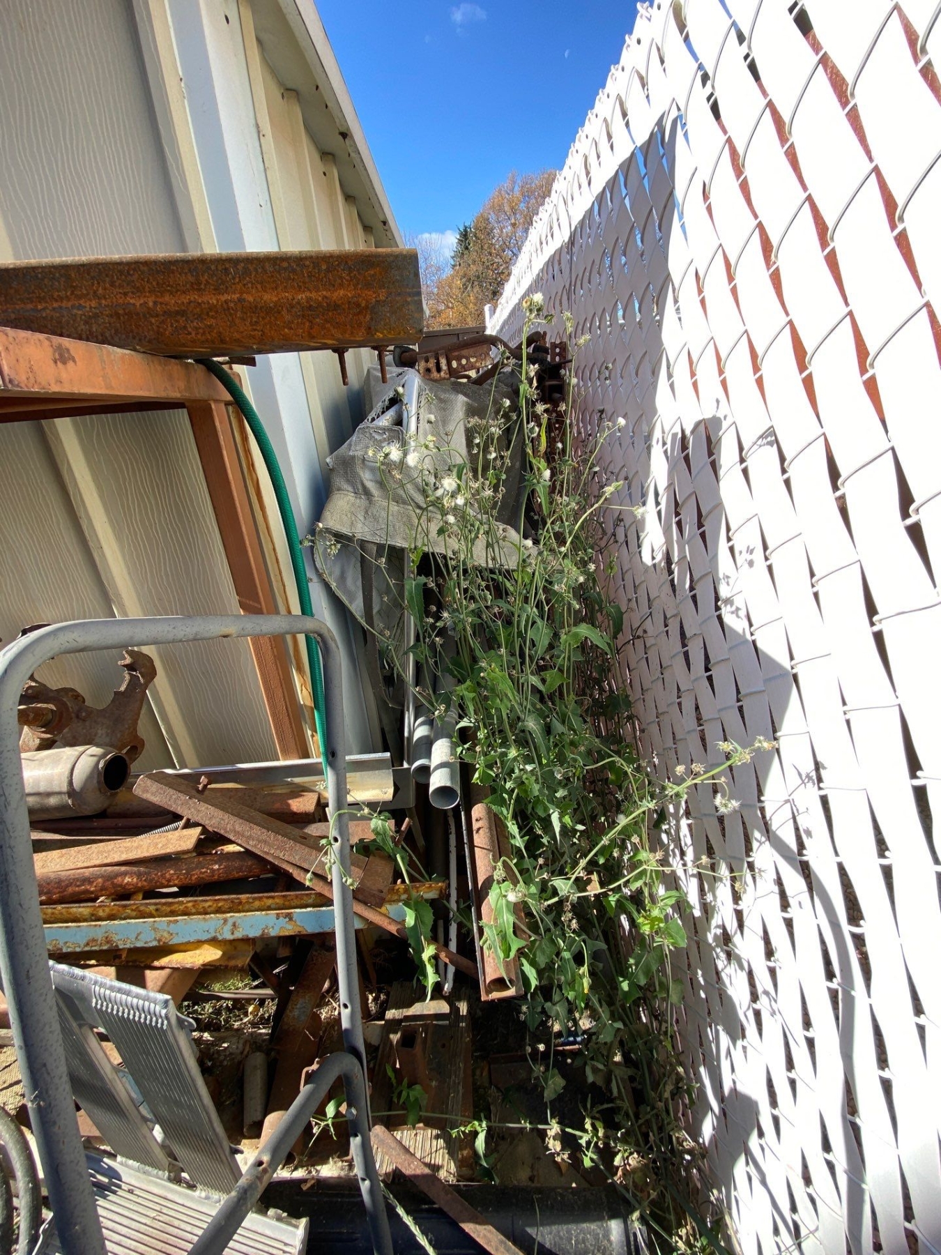 Scrap steel steel bar, steel pipe, steel tubing, steel rack all steel contents in corner garden hoses, hydraulic hoses included and more