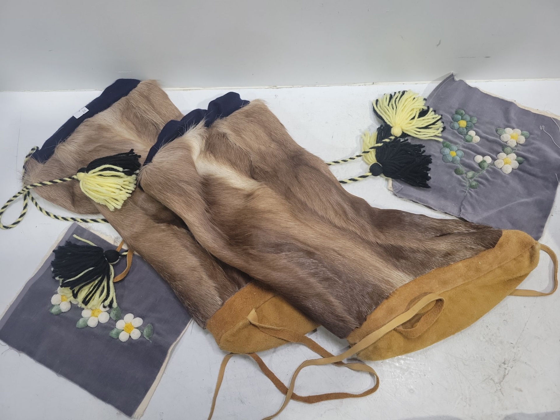 Seal Skin MUK LUKS From Saca's Harbour N.W.T. 12L w/ Moose Tufting Floral Art
