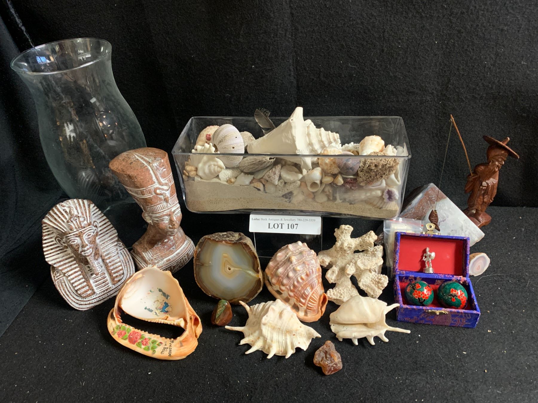Seashells, Egyptian Statues, Ben Wa Balls, Wooden Oriental Fisherman Carving
