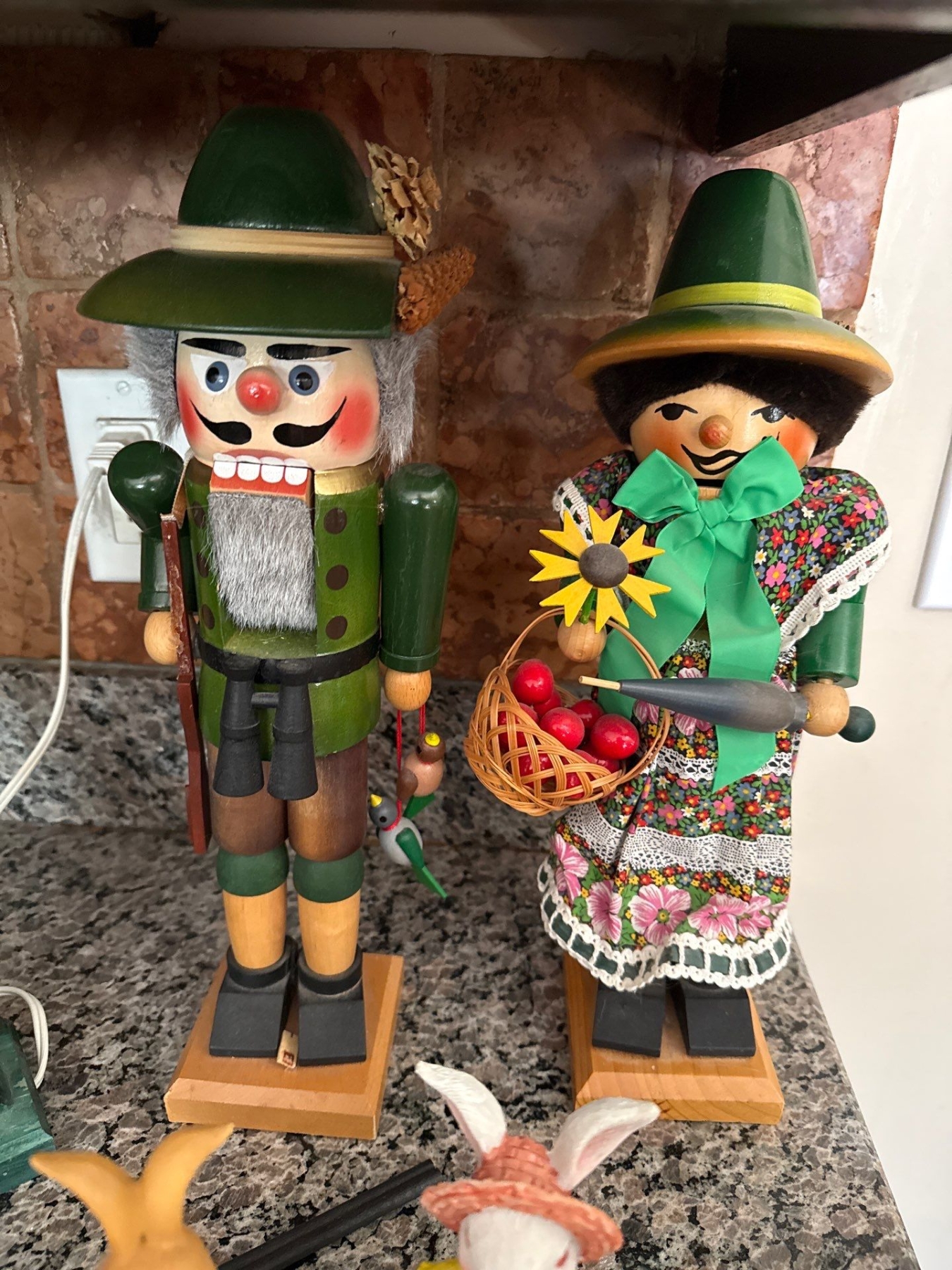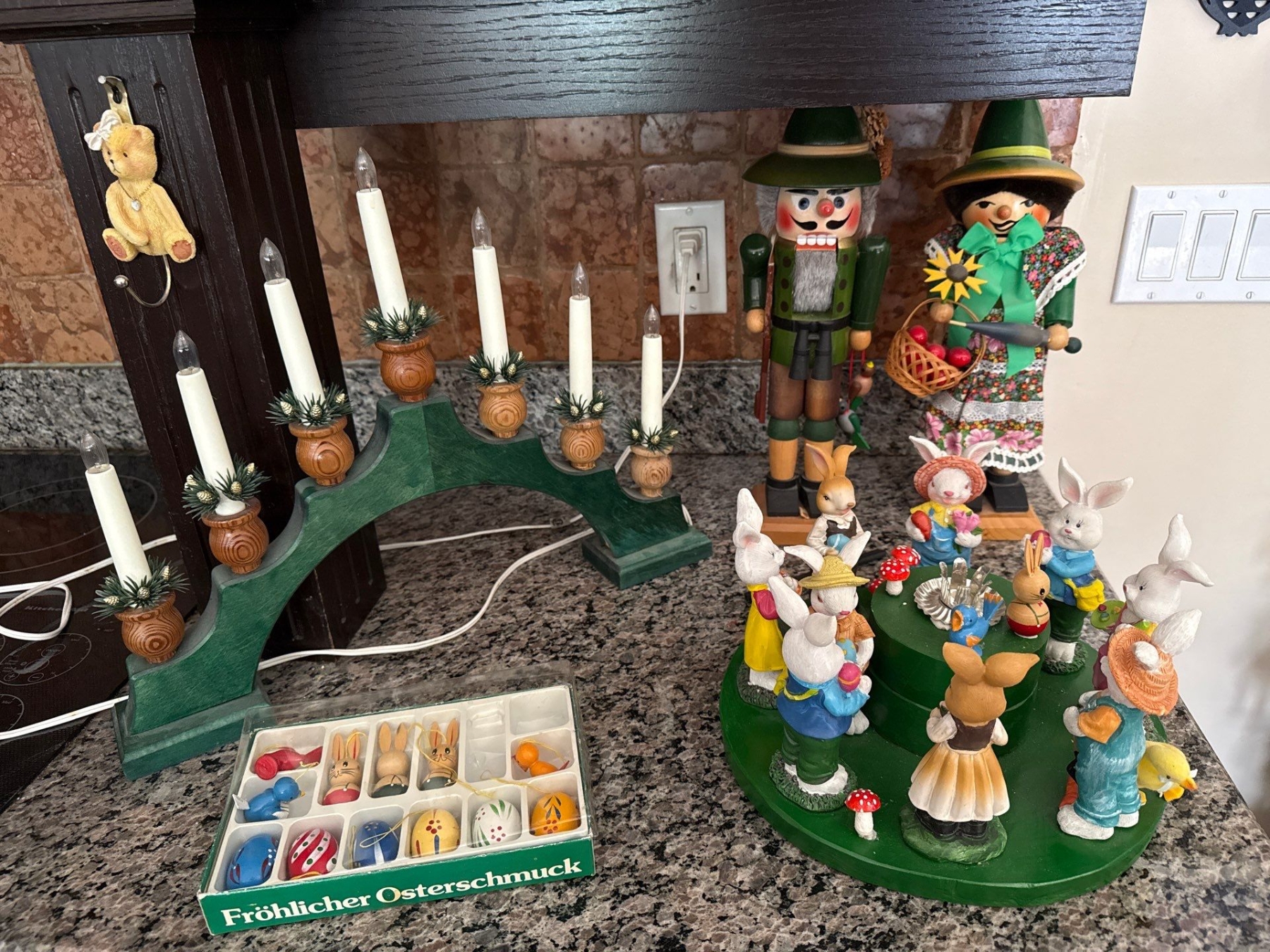 Seasonal Decor - Hunter Nutcrackers (16T), Decorative Easter Bunnies, Hangable Wood Bunnies & Eggs
