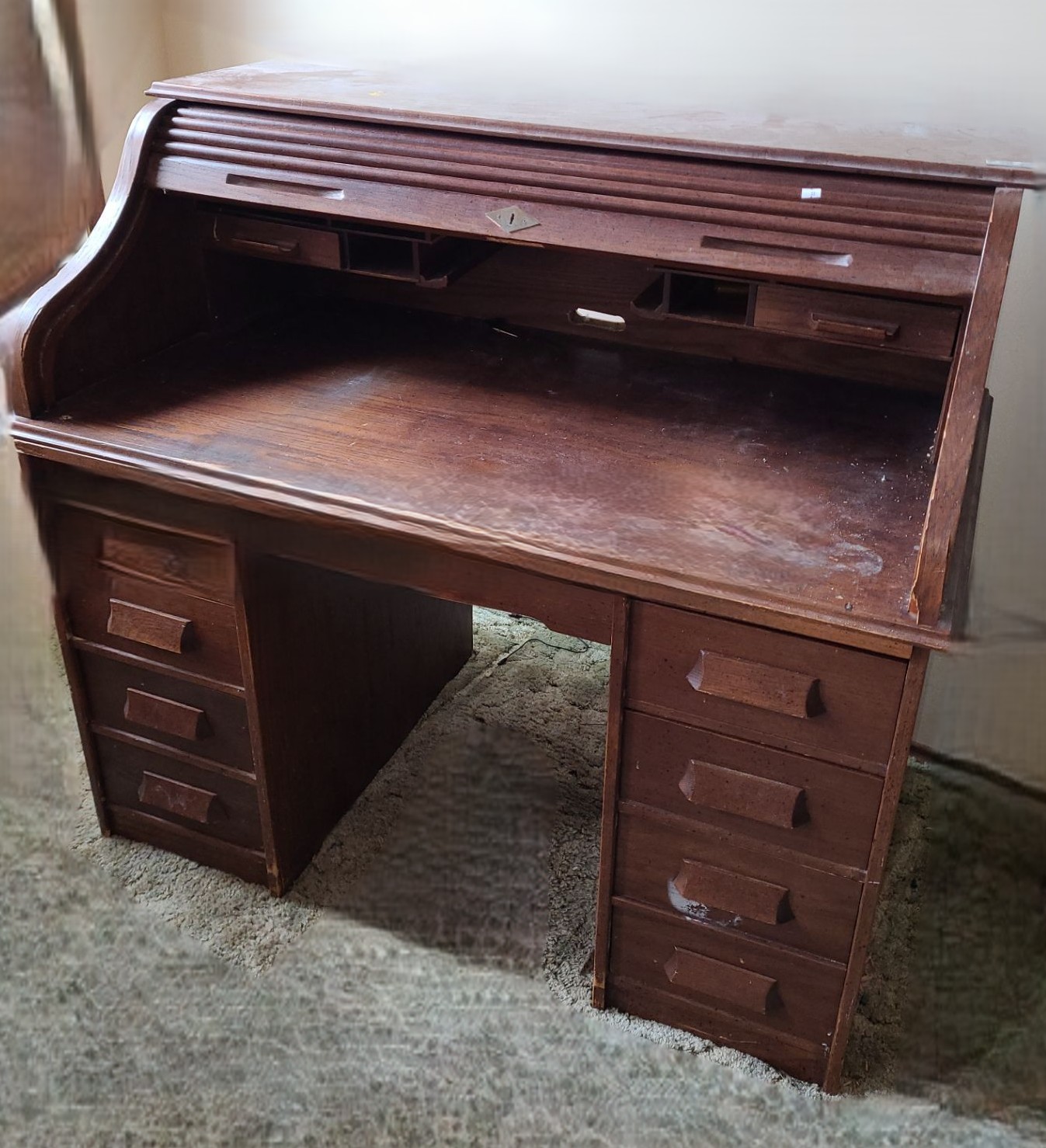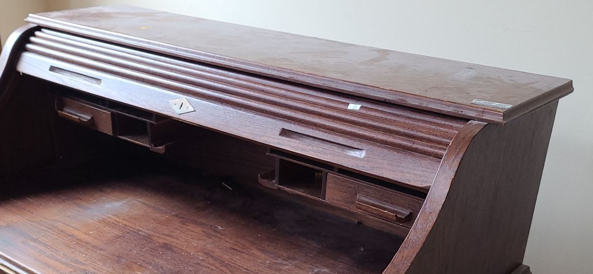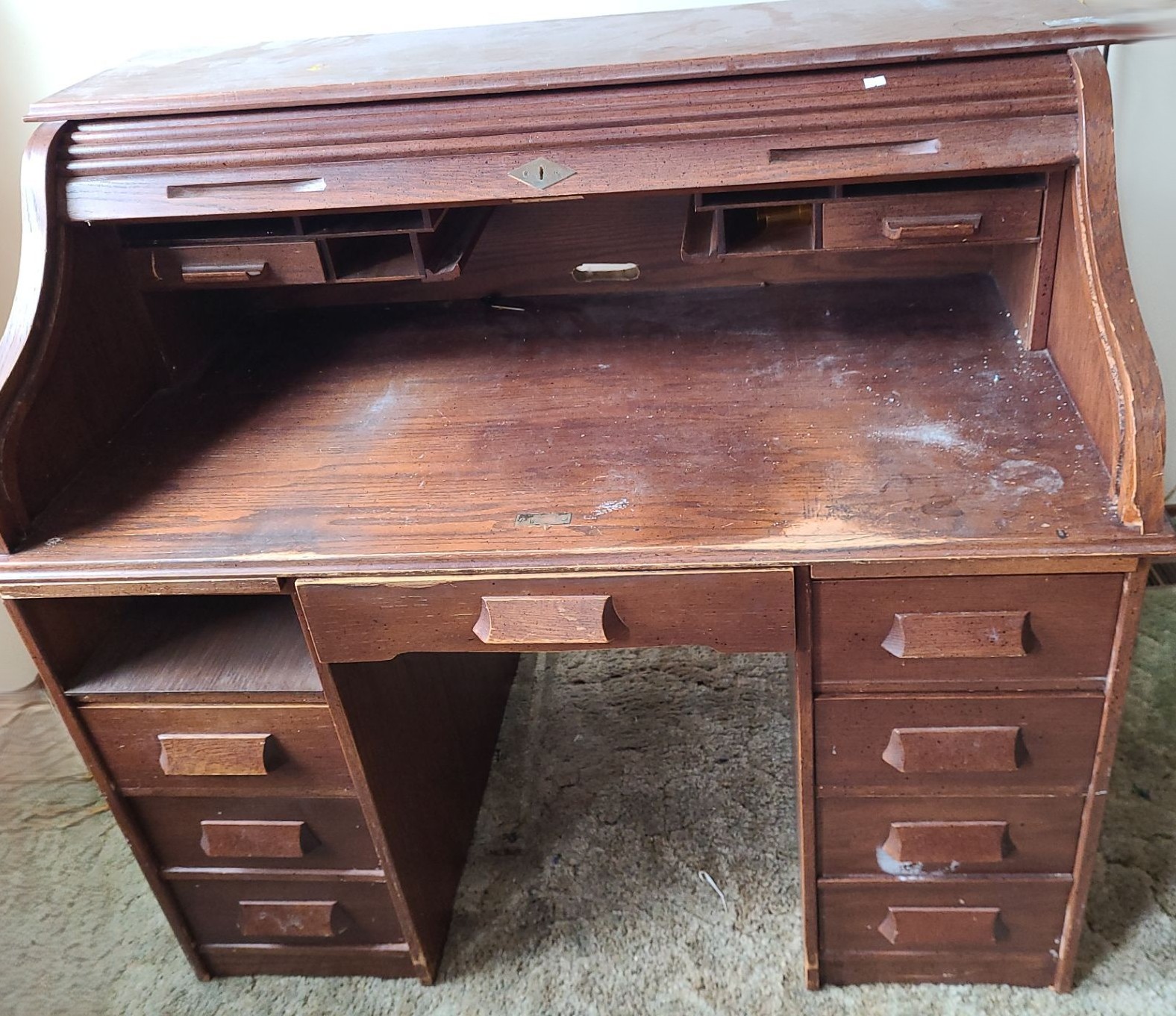 Finish Scratched/ Chipped, No Key/ Drawers Auto Lock When Top Rolled Down, Very Heavy, Bring Assistance