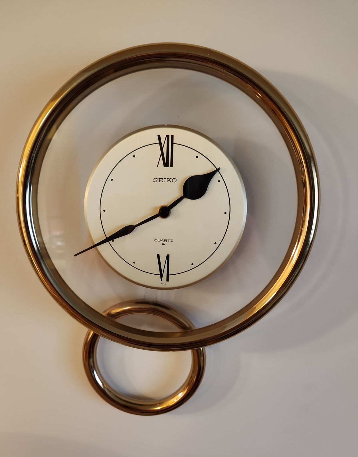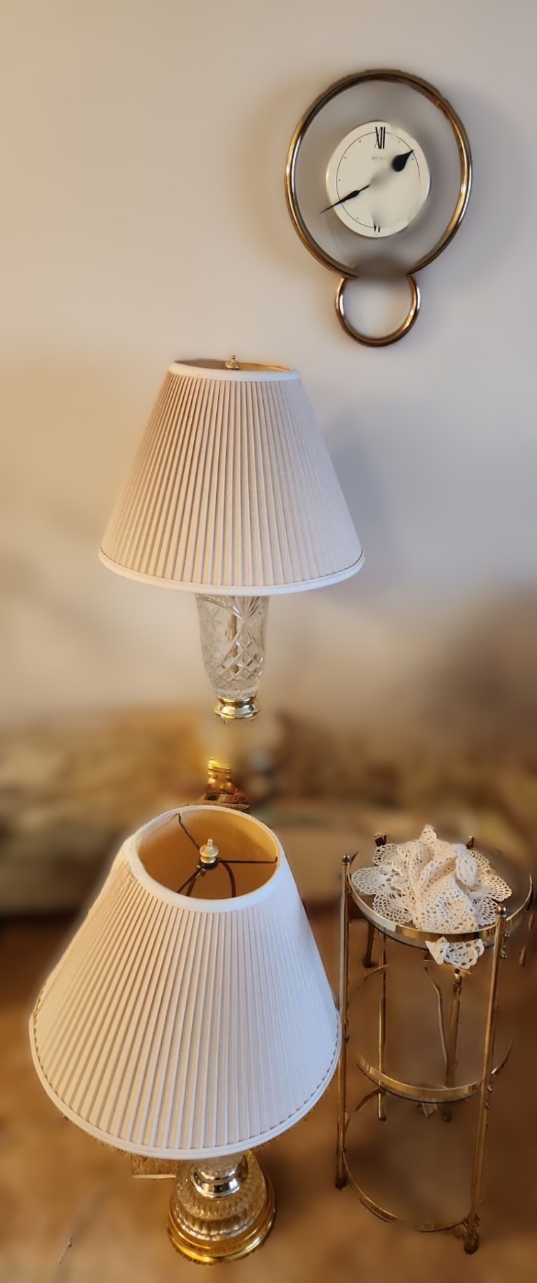 Seiko Clock 11" Face, 14 T, Two Lamps 6.5" Base, 26.5 T to Top of Finial, Table 9.5" Diameter, 24 T