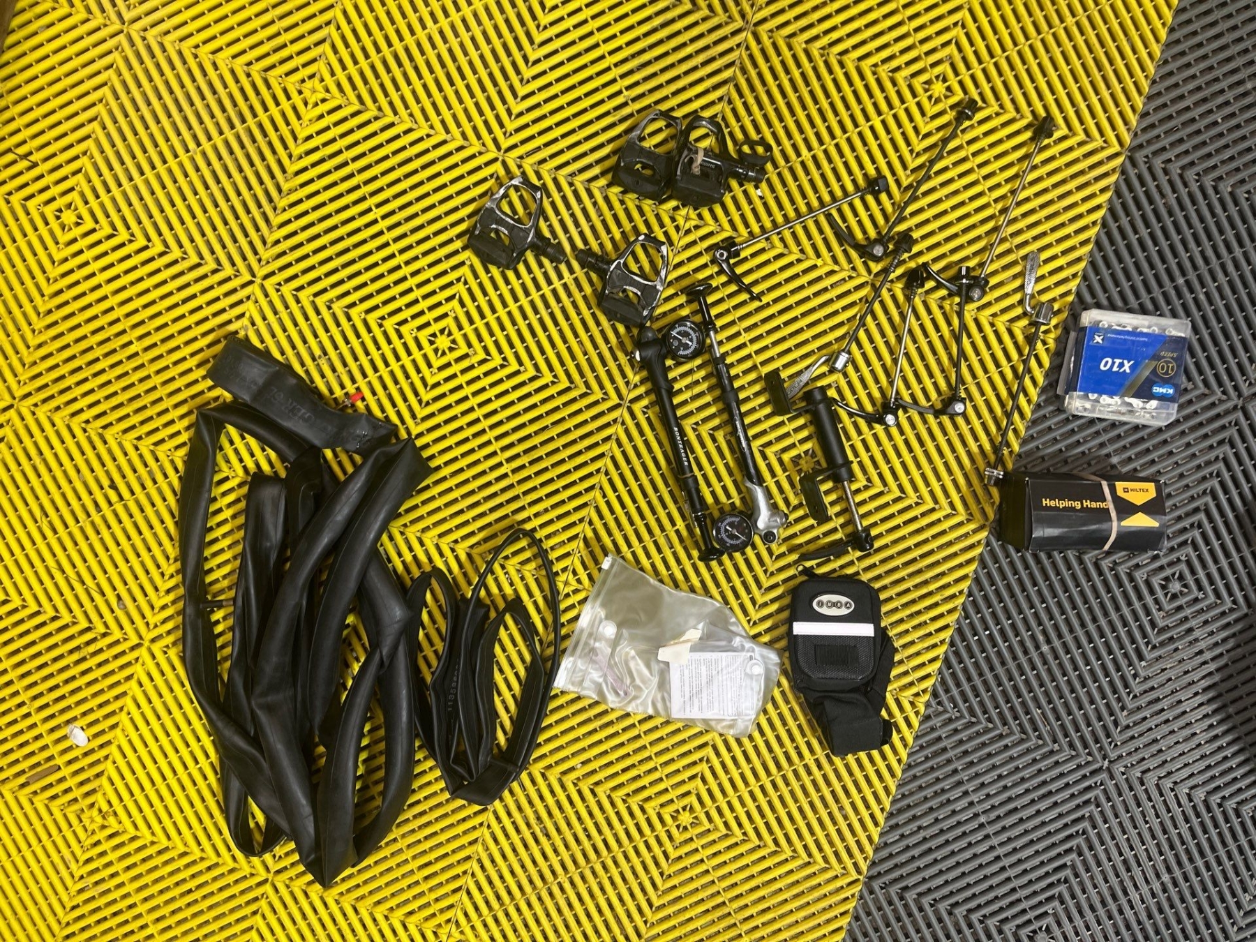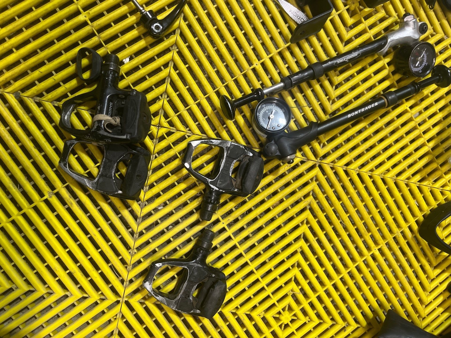 Selection Of Quick Releases From FLO/Bontrager 2 Sets Of Quick Release Clip Pedals 2 Bontrager Air Pumps With Pressure Gage Selection Of Bontrager Inner Tubes .