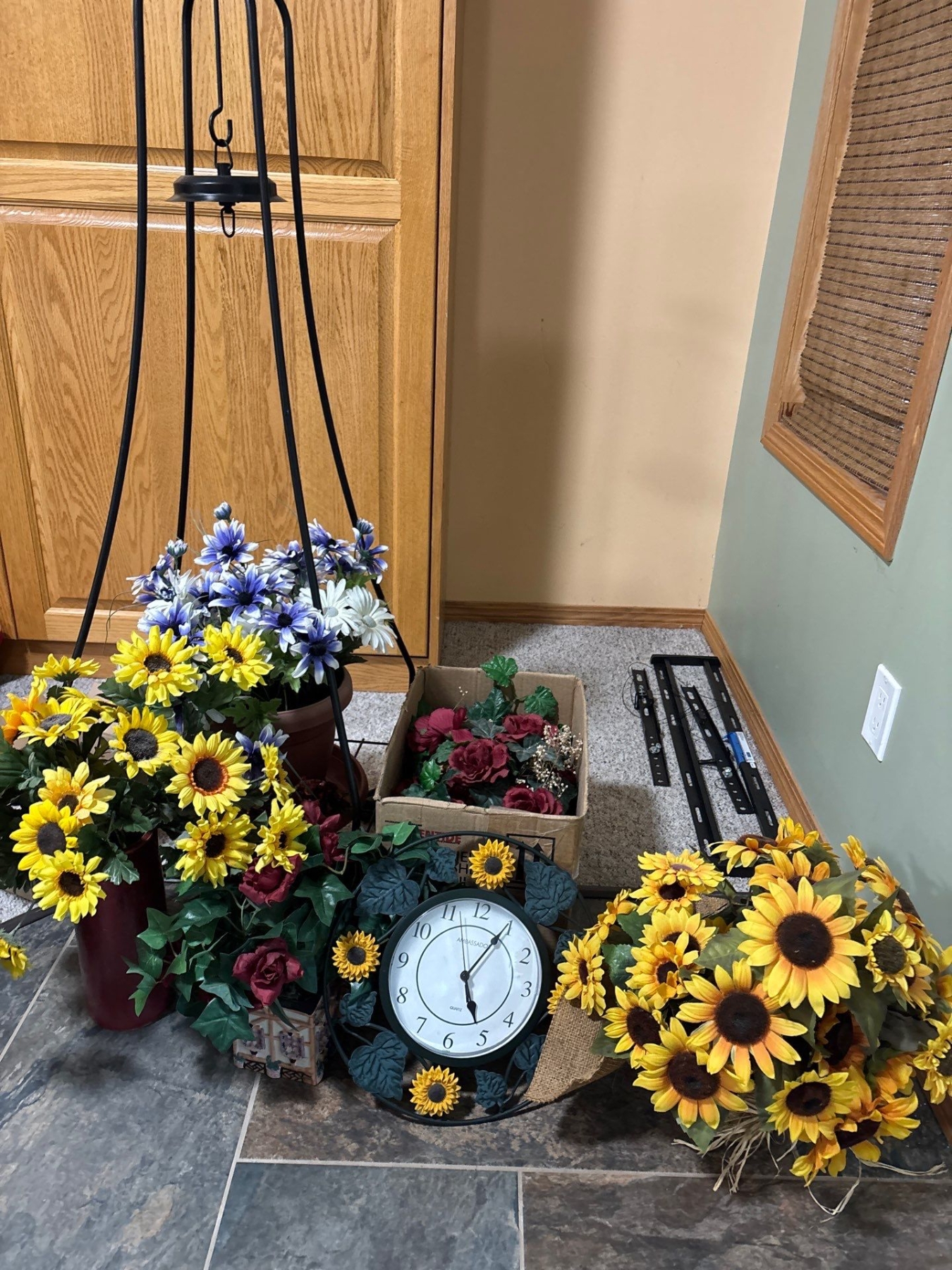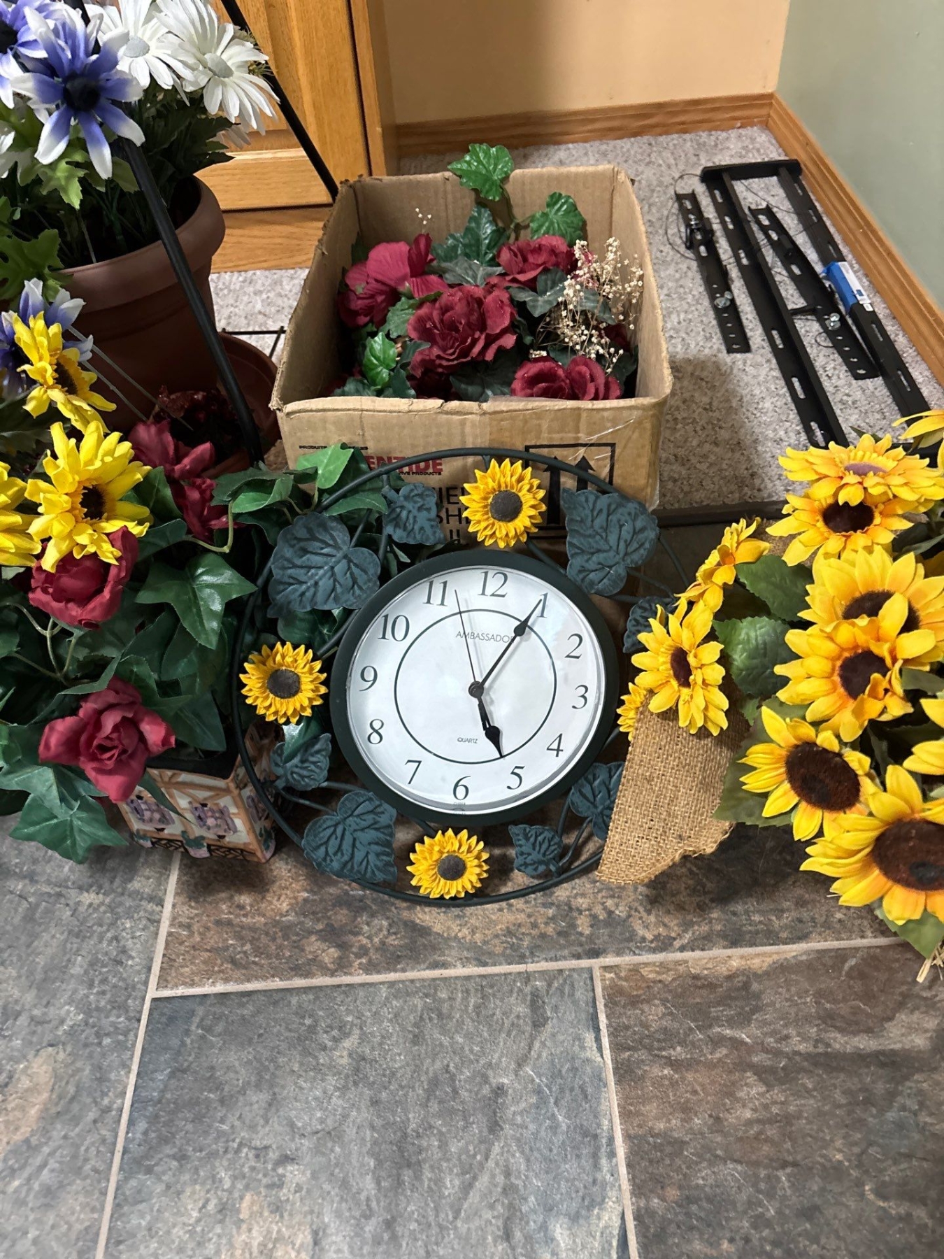 Selection OfSilk PlantsPlant Holder & Sun Flower Clock