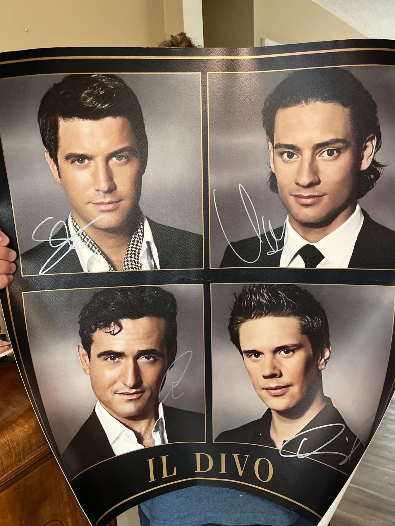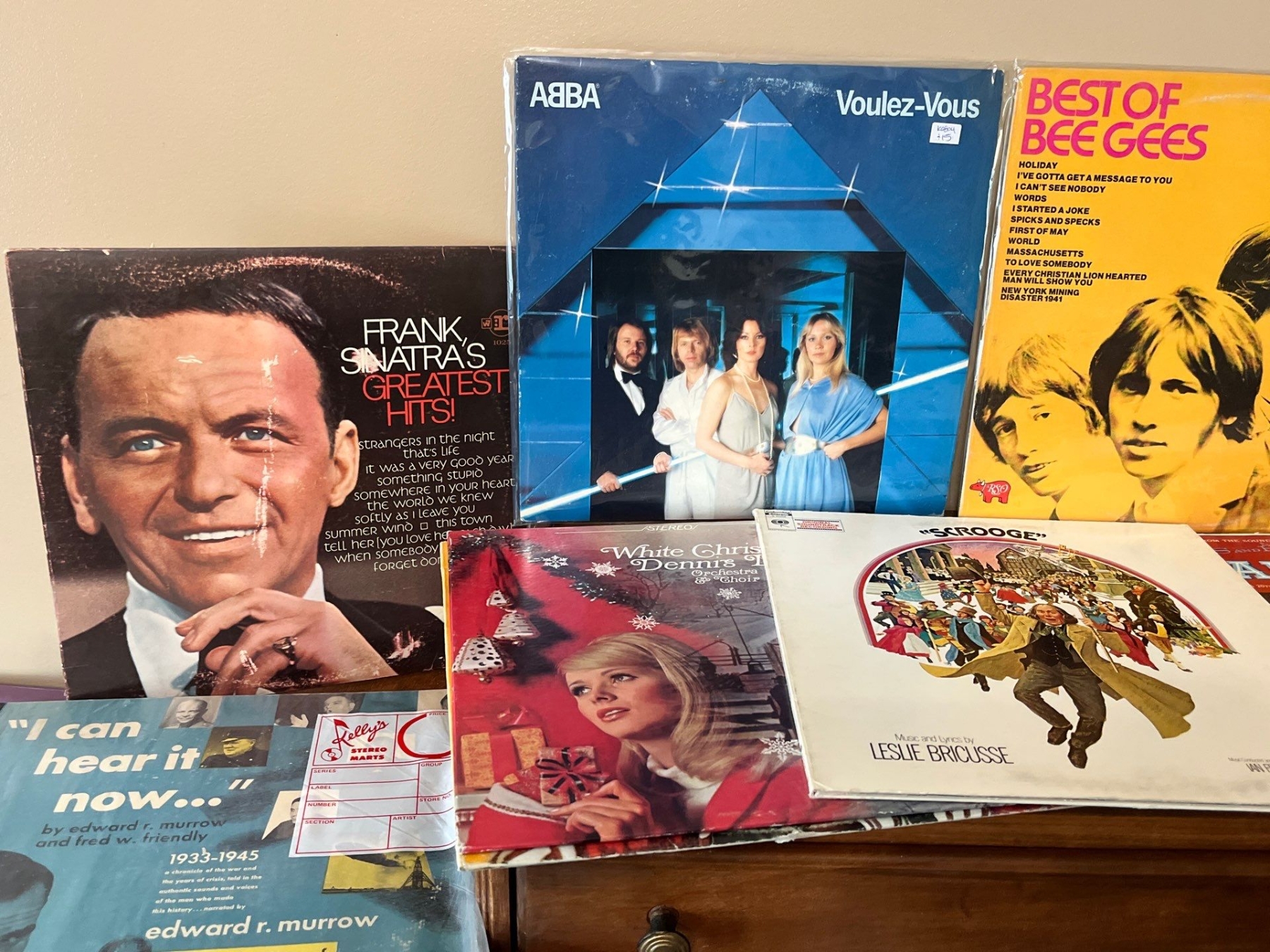 Selection of vintage albums Frank Sinatra‘s greatest hits best of the Bee Gees ABBA Voulez-Vous the sound of music, Scrooge and other great items. signed poster by IL Divo