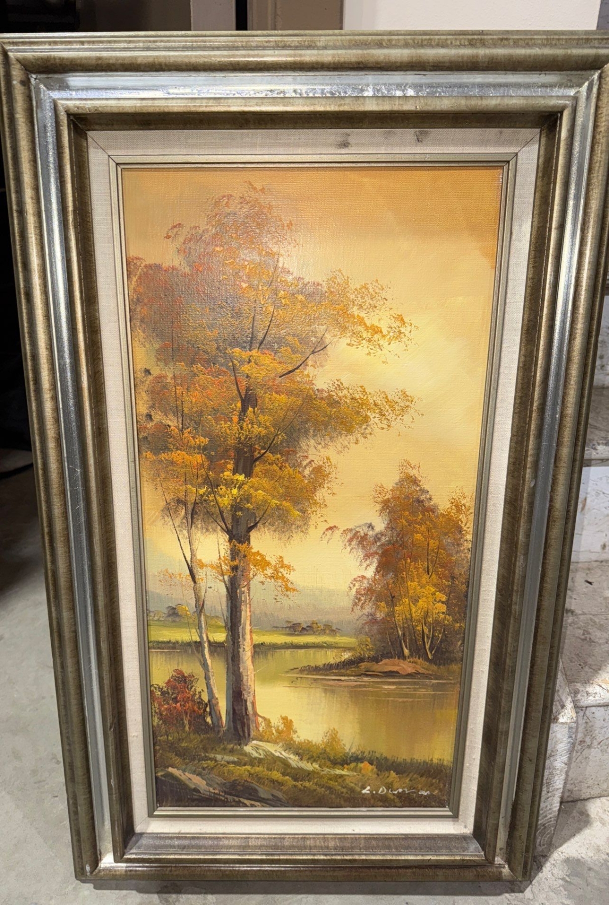 Serene Autumn Landscape w/River -Oil On Canvas Signed By I.Cafieri 19x31"tall